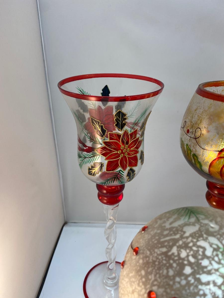 Large Glass Holiday Painted Stemmed Goblet Style Candle Holders and Lights
