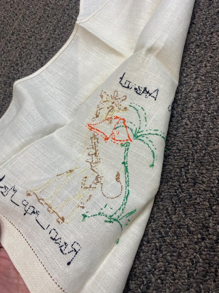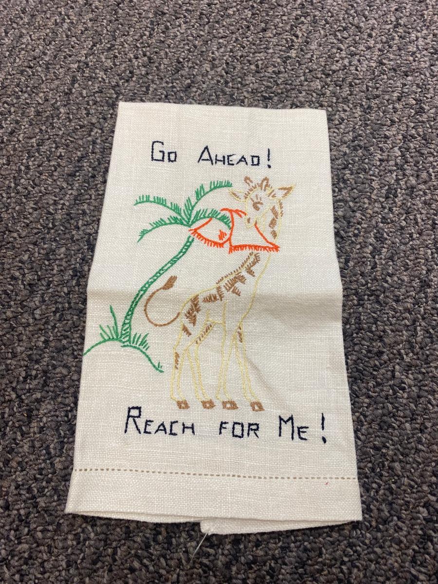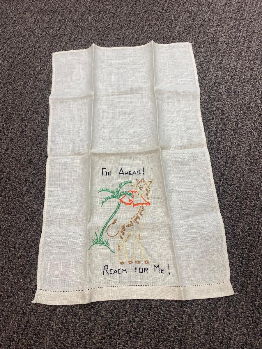 Hand Embroidered Vintage Giraffe Tea Hand Towel