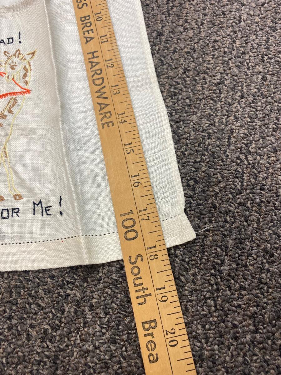 Hand Embroidered Vintage Giraffe Tea Hand Towel. Made from more of a dinner napkin. Displays great. Some light discolor from age.