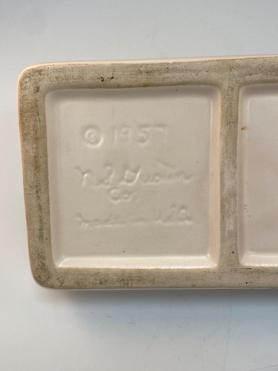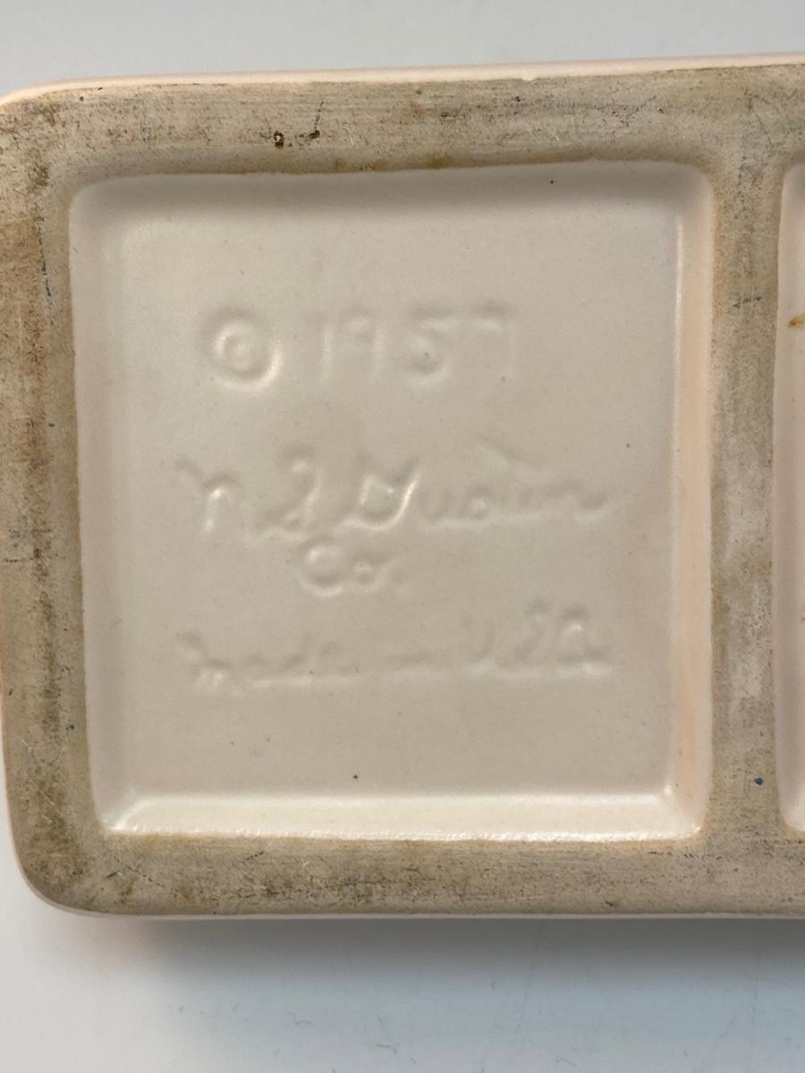 Vintage Pale Pink 1959 Pottery Divided Trinket Dish with Seashell Adorn Lid