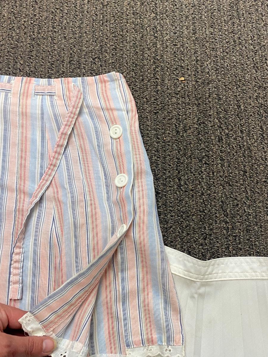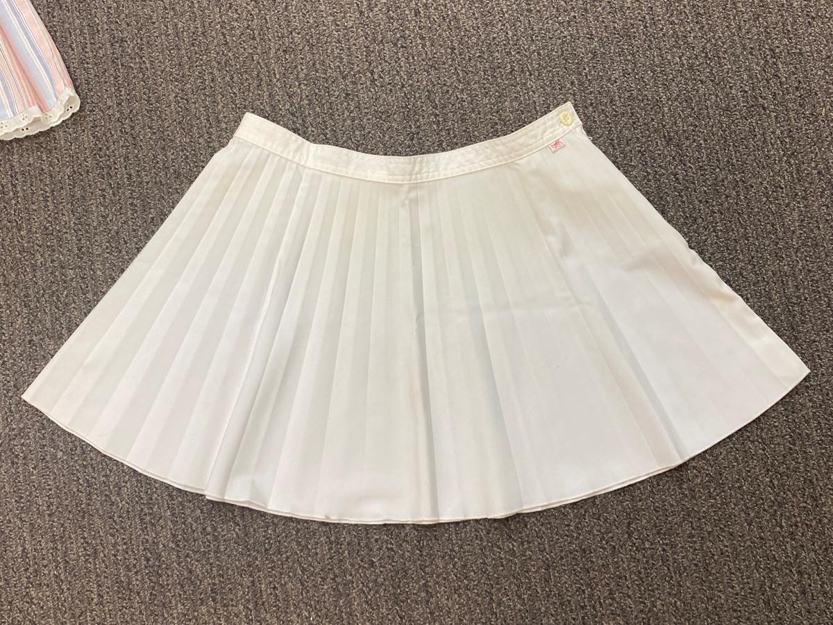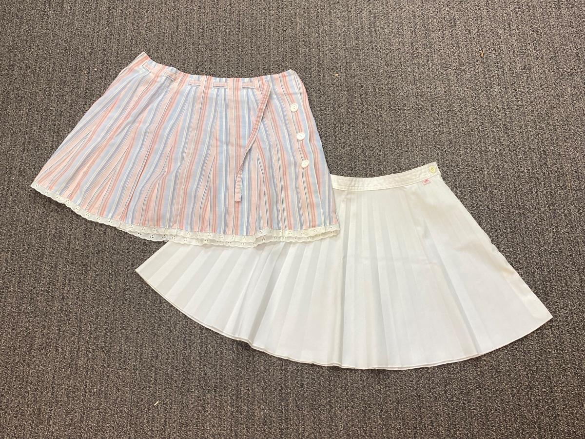 Pair of Vintage Side Button Tennis Mini Skirts. In vintage condition. Some light discoloration. About 16" waists