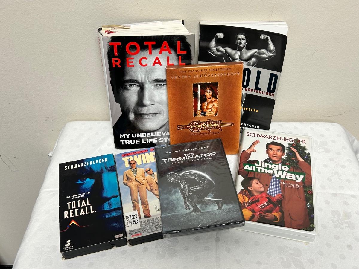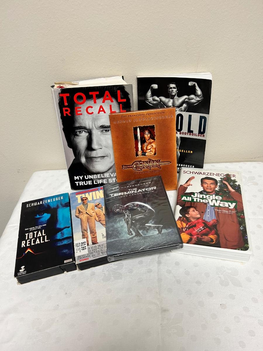 Arnold Schwarzenegger Fan Lot VHS Movies DVDs Books