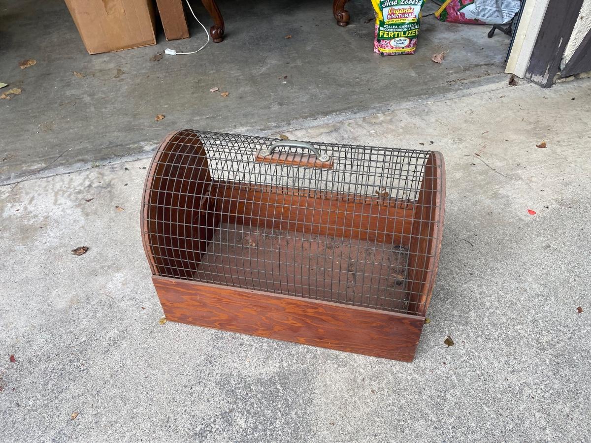 Vintage Wood and Chicken Wire Animal Transport Cage. Good condition.