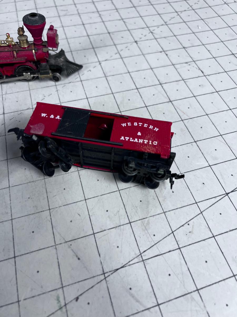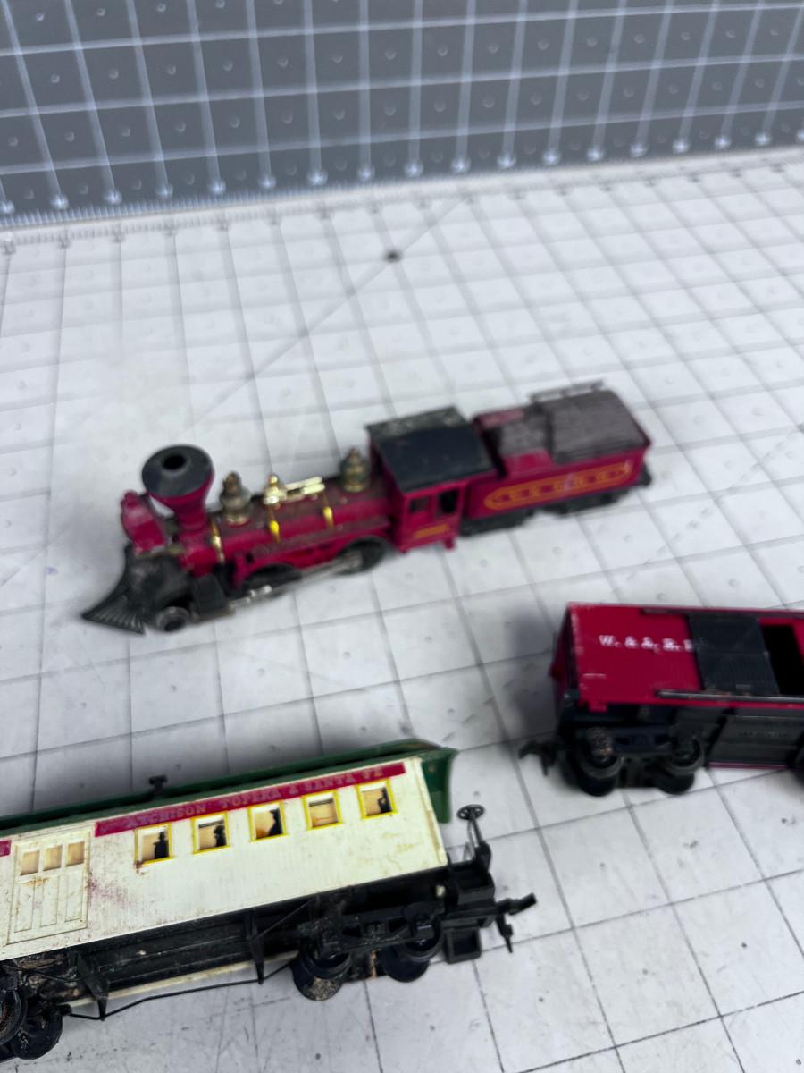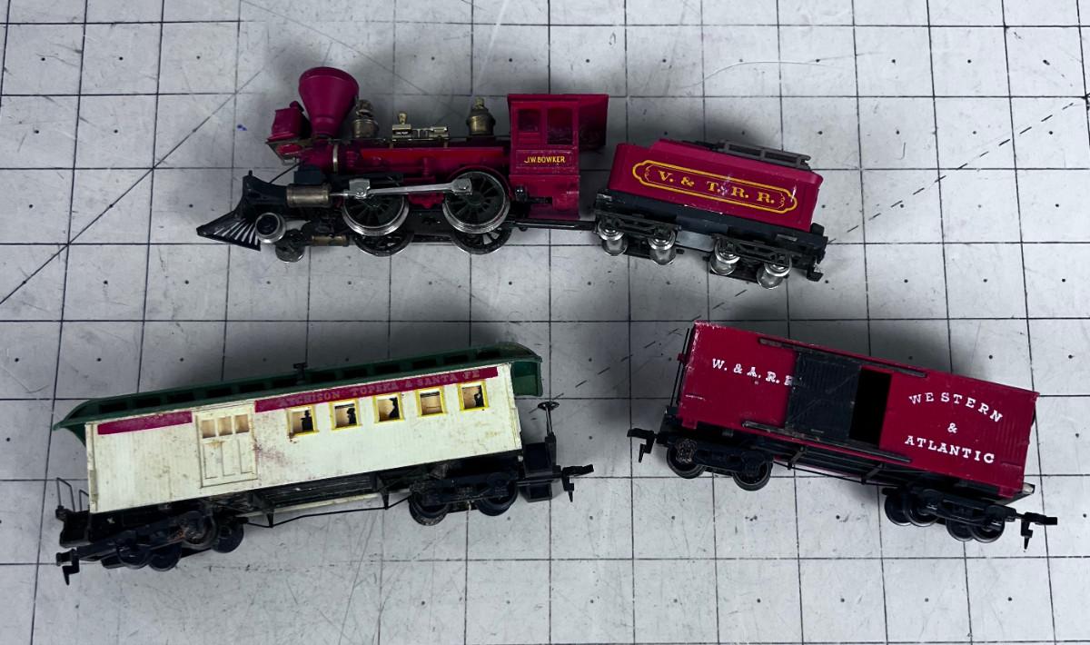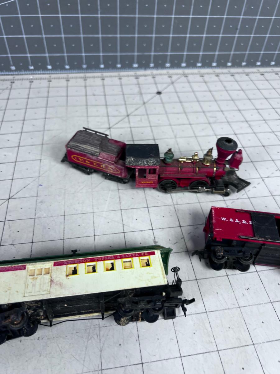 Ho Scale Engine and (2) Old Timey Cars