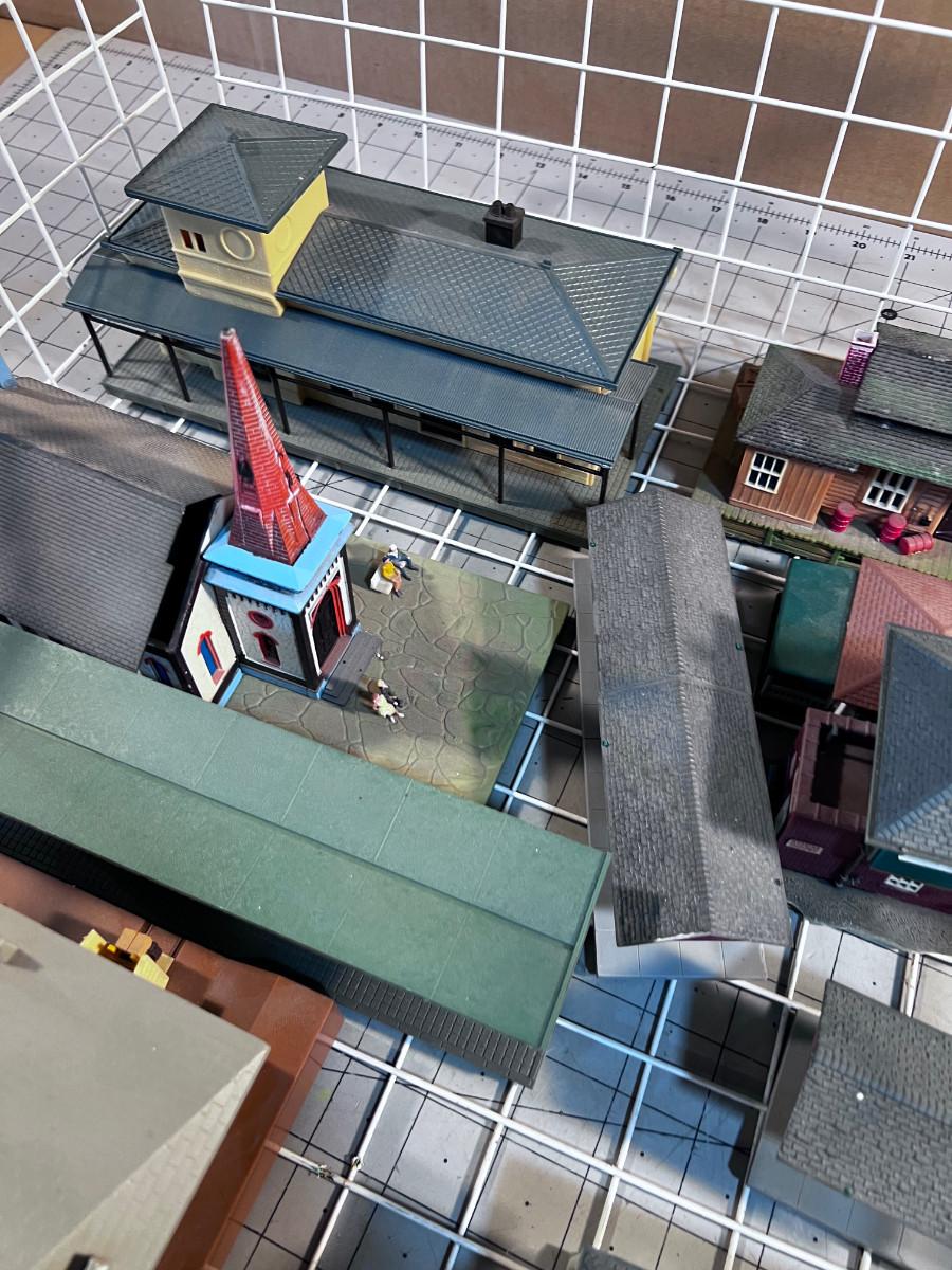 HO SCALE  Train Model Buildings; Church and Train Station.