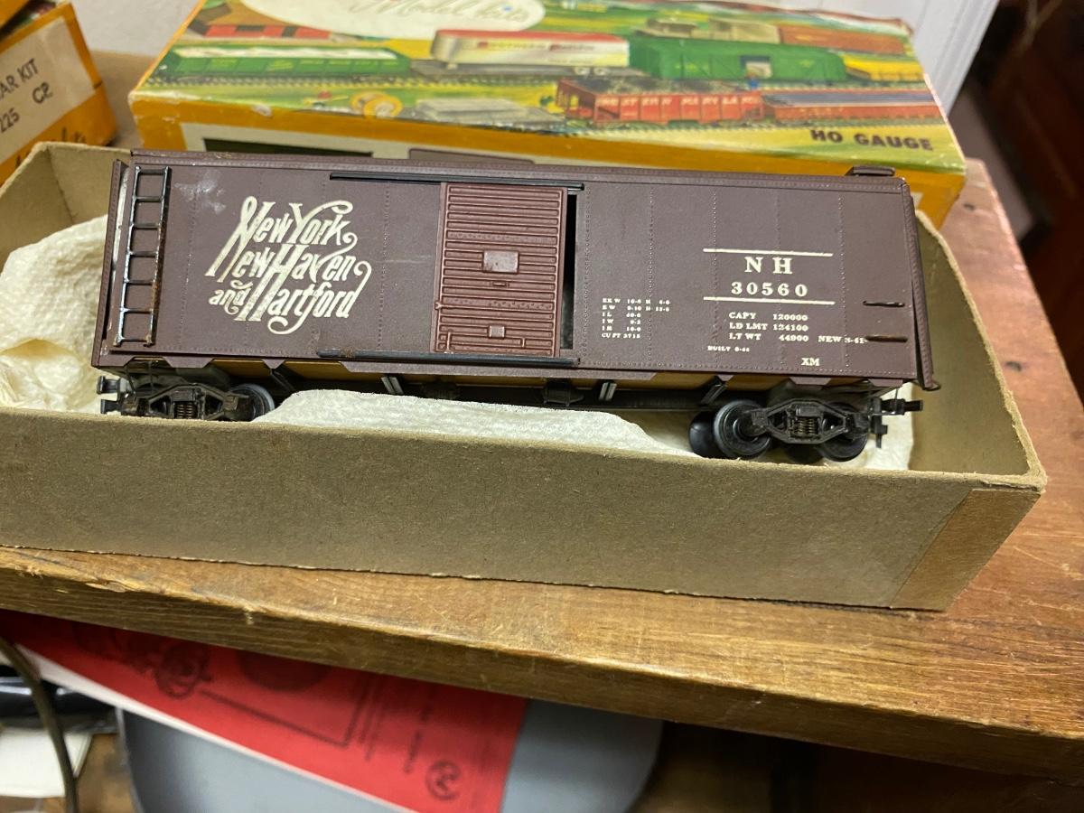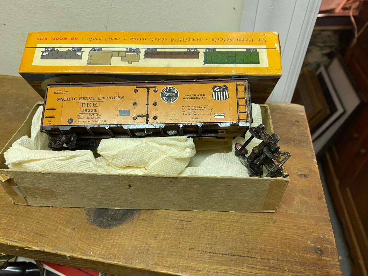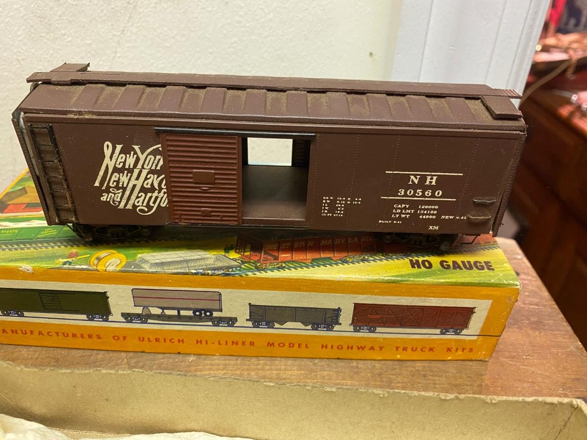 Boxed group of 3 Ulrich model kits. Trains are in varying condition as shown in photographs. HO Scale.