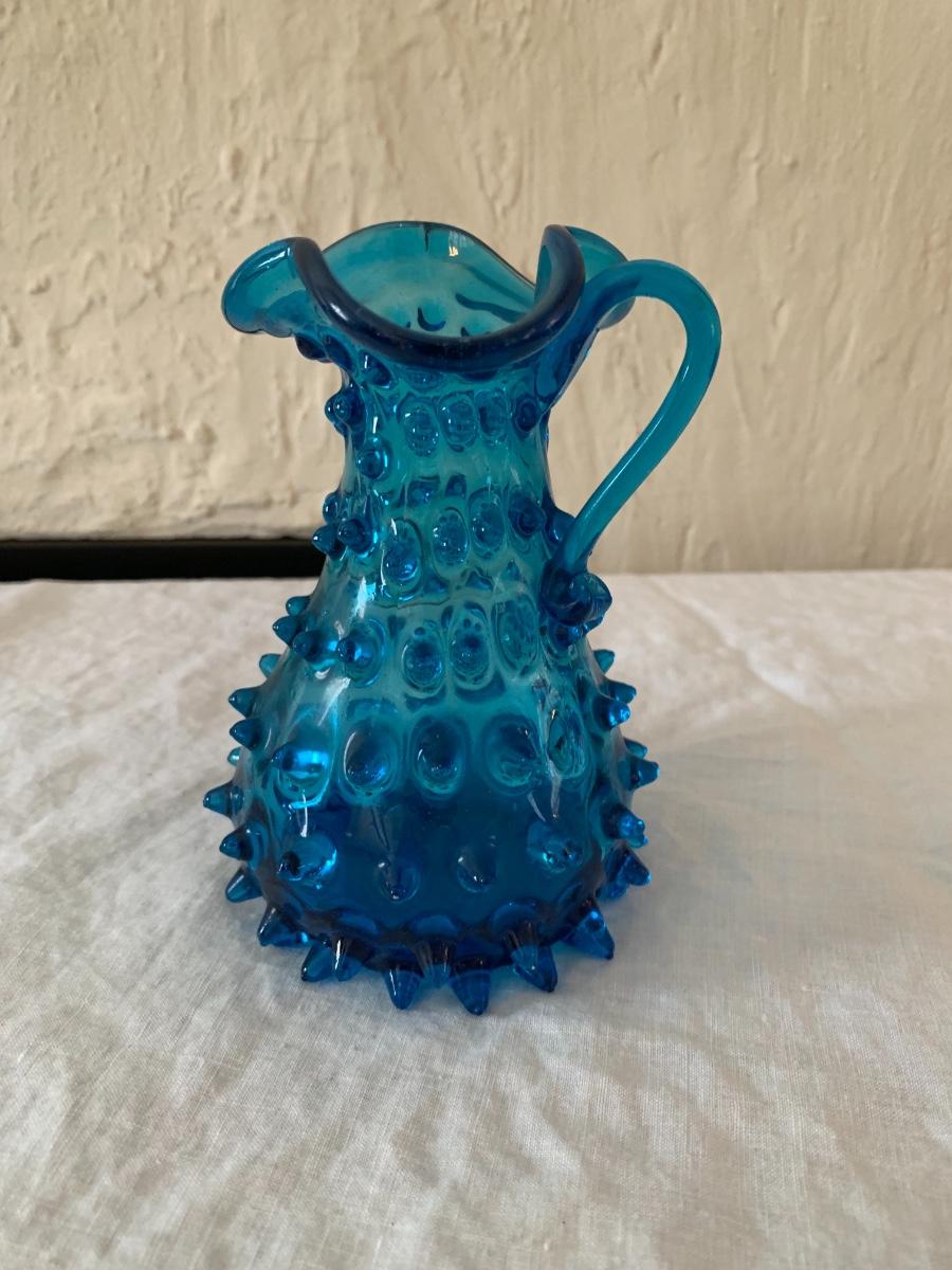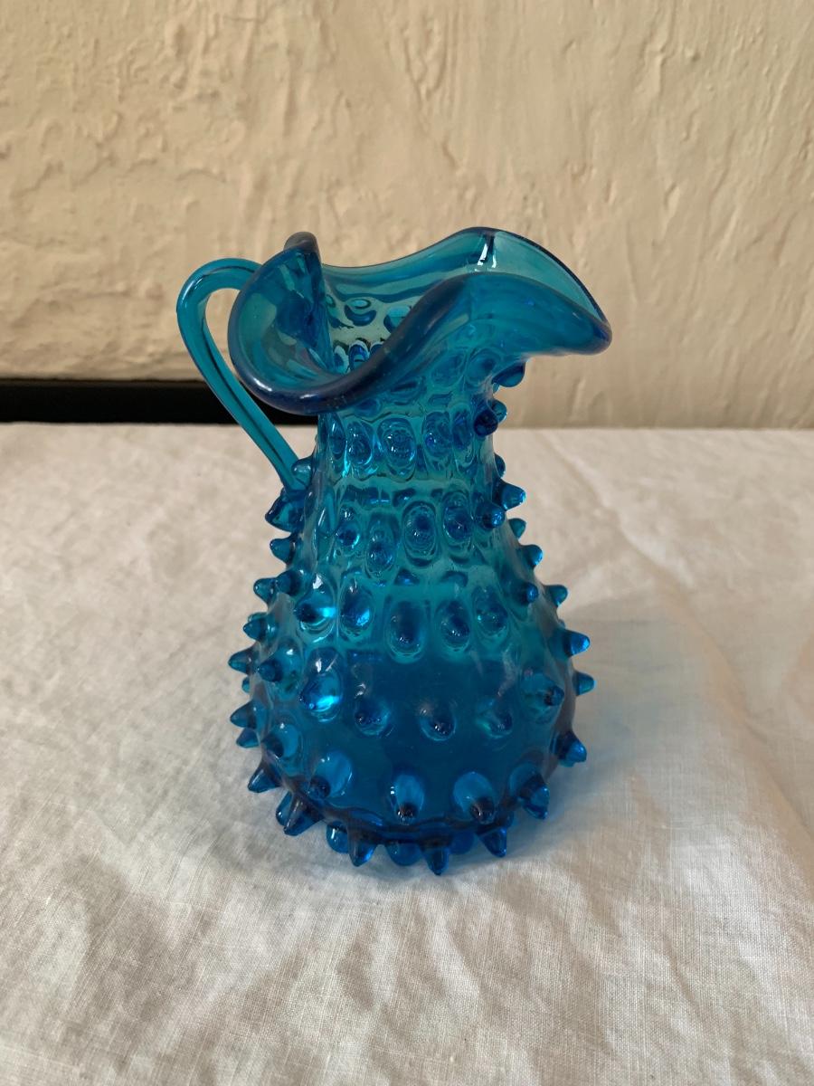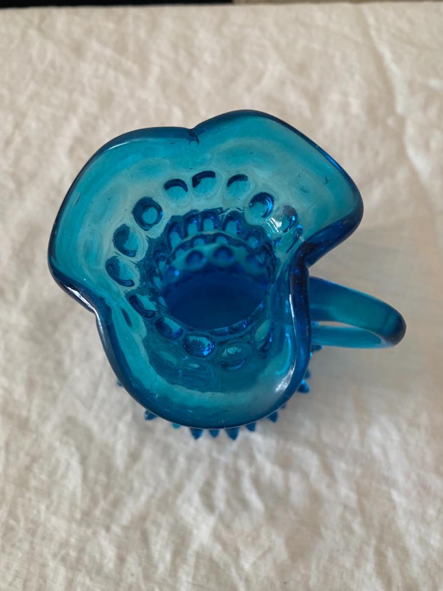 Lovely saphire colored small pitcher/vase, 5 3/4", excellenet condition