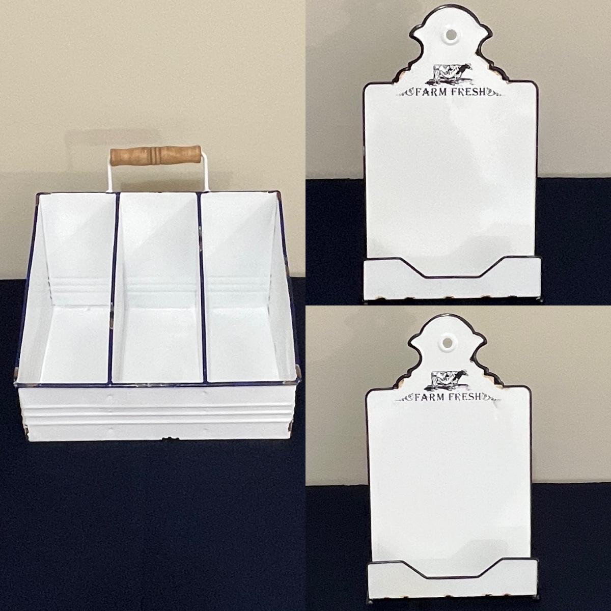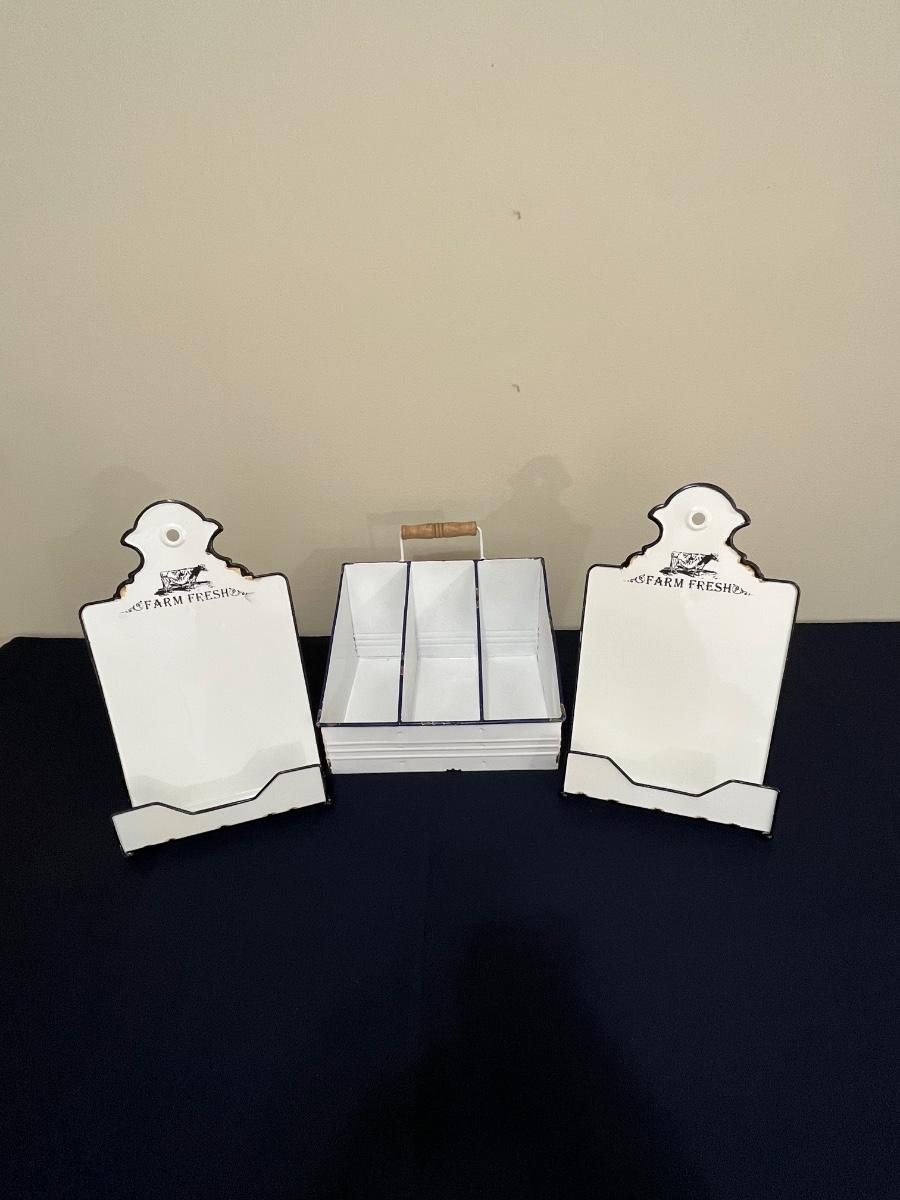 HOBBY LOBBY ~ Pair (2) Of ~ Porcelain White & Black Trim Book Holders ~ Navy Trim Divided Tray