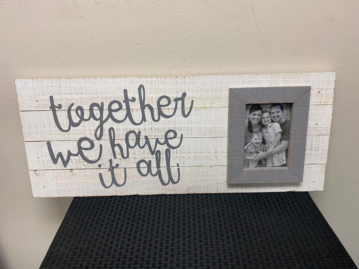 Hobby Lobby Wood Craft Family Picture Frame Together We Have It All, there is no significant damage to the frame and is in good displayable condition. Check pictures for more details and for sizing.