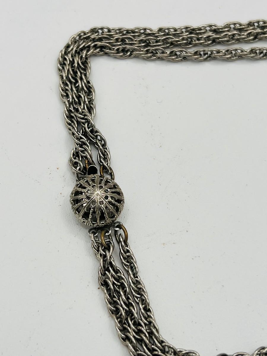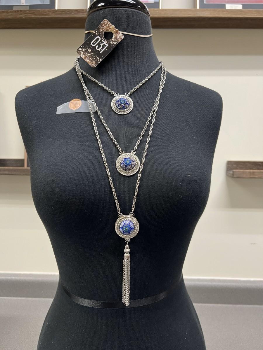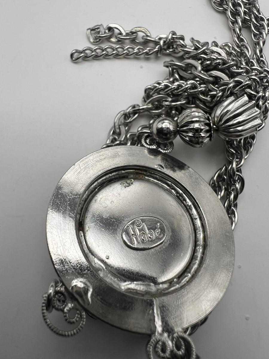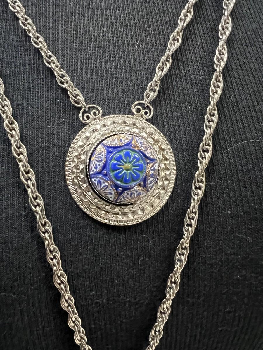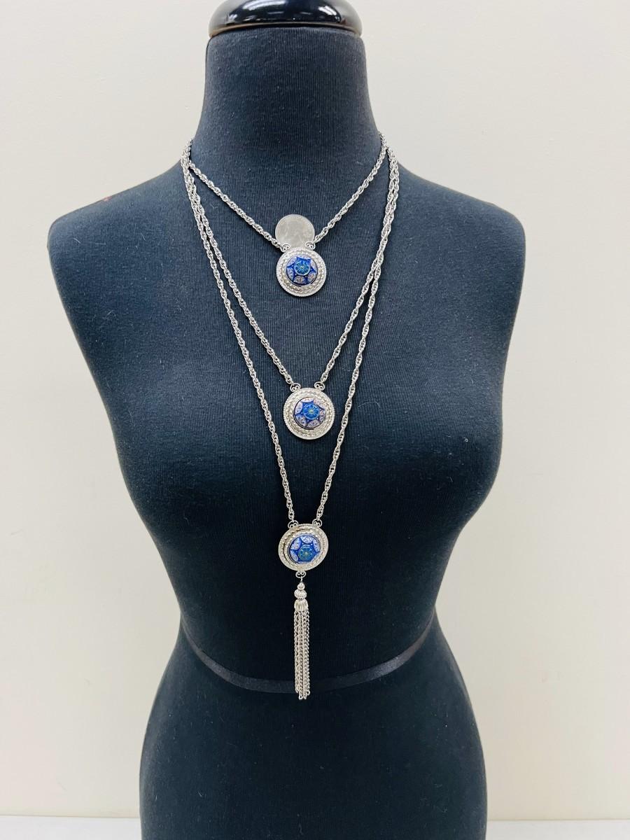 Hobe necklace in silvertone and blue enamel. 18.75 inch drop