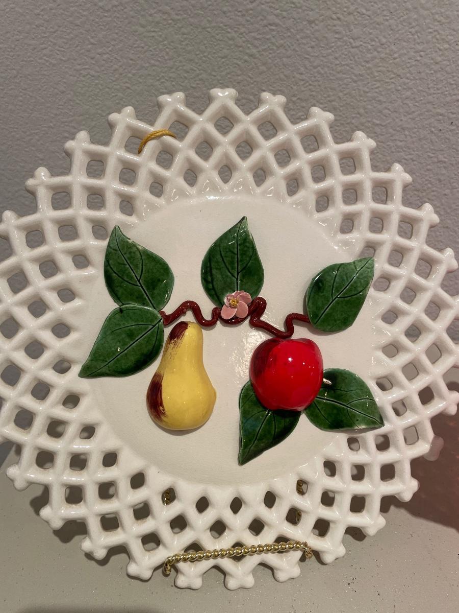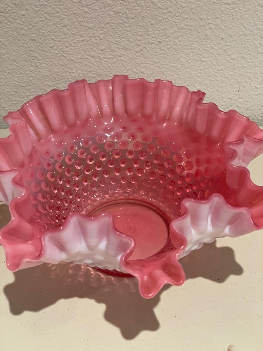 Hobnail cranberry bowl & fruit decor