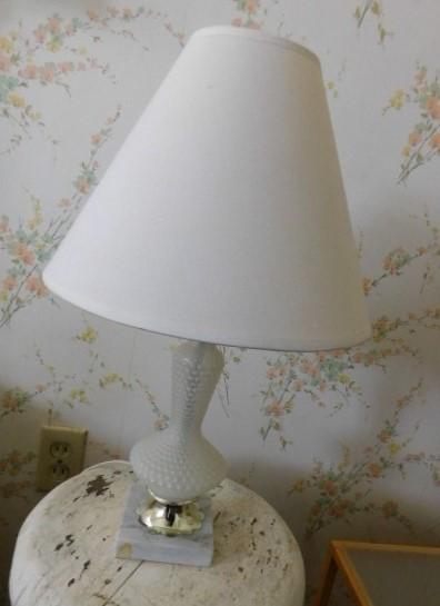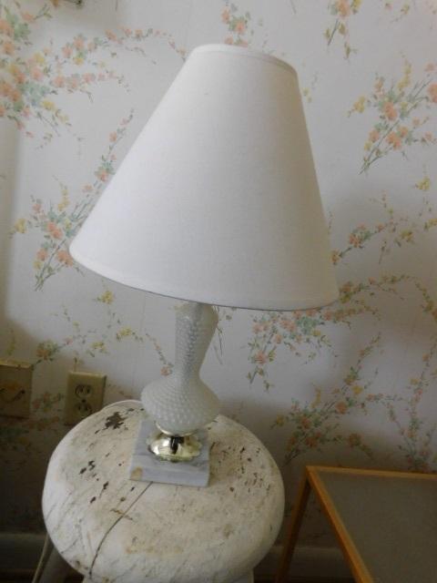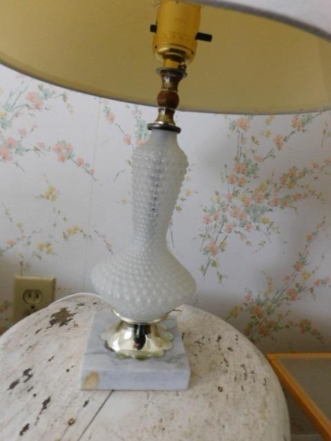 Hobnail Glass Post Lamp on Marble Plinth Base