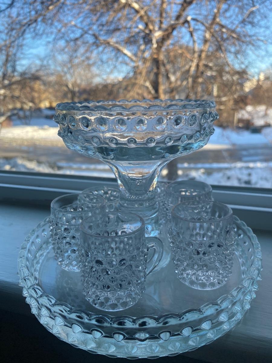 Hobnail mixed pattern lot with decanter