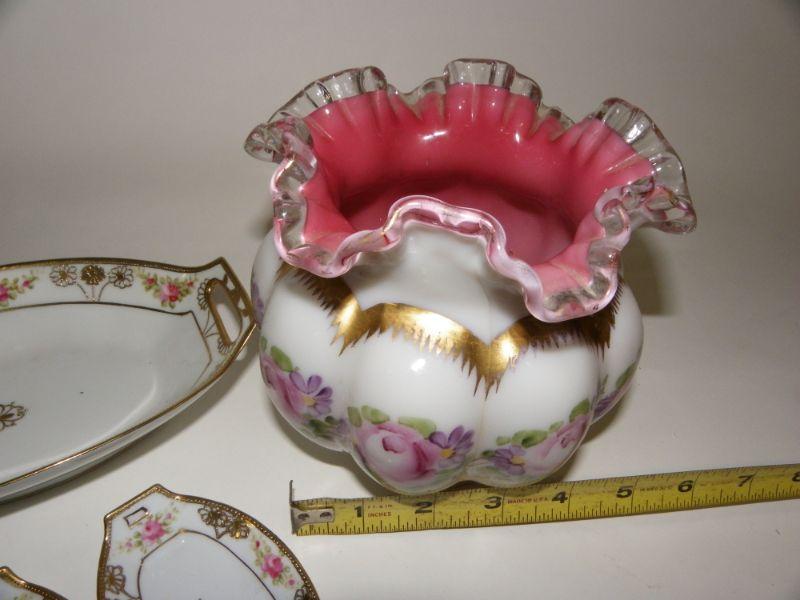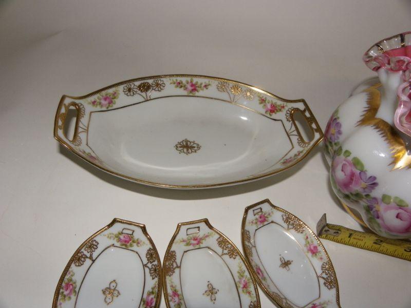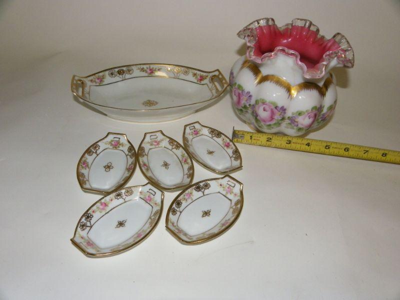 Hobnail vase and Vintage Njppon Server and dishes.