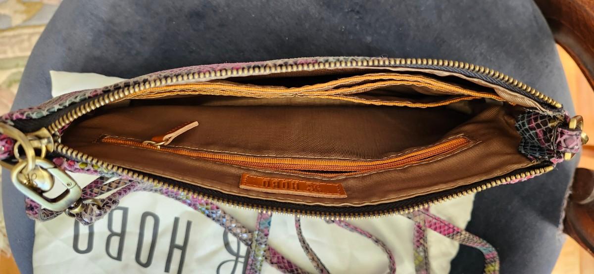 Metallic multicolor crossbody bag with adjustable strap. Storage bag. 9 x 6 inches