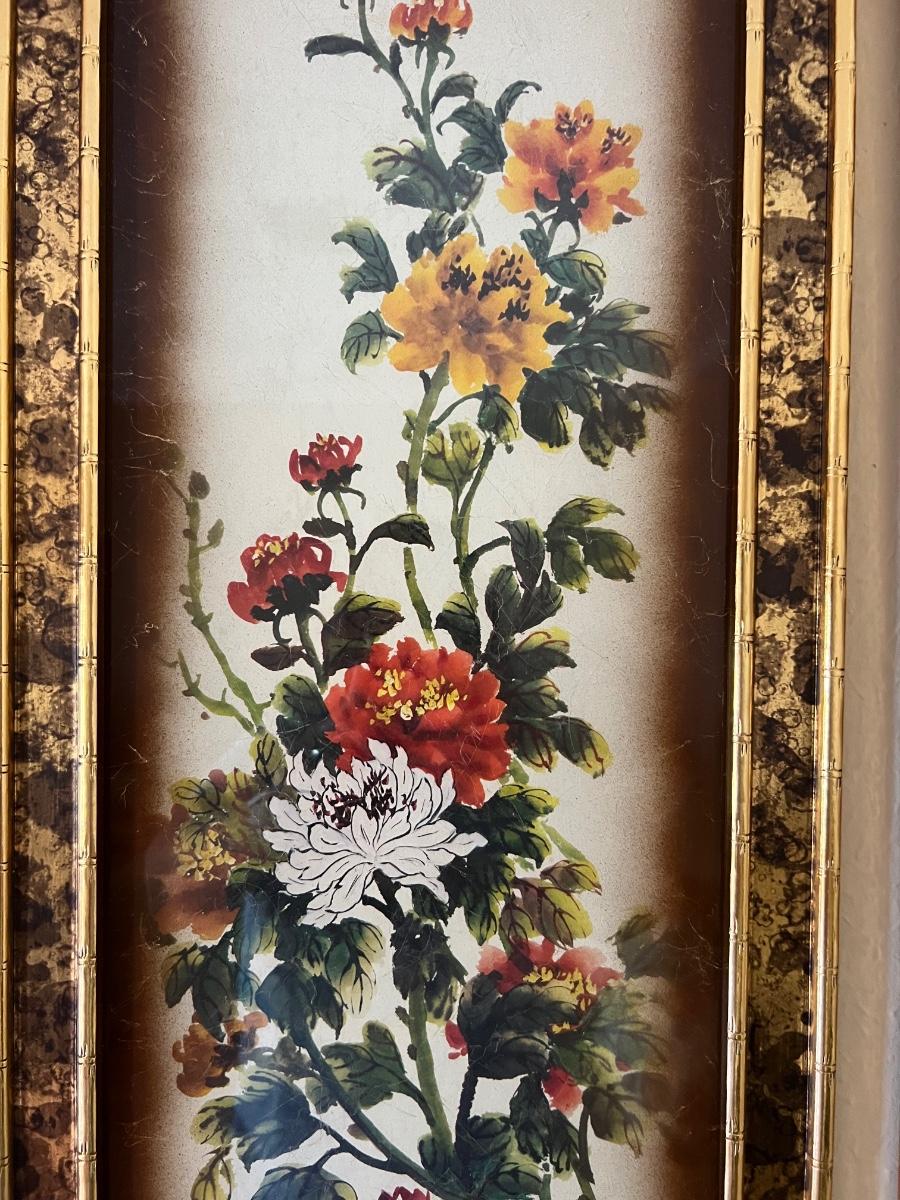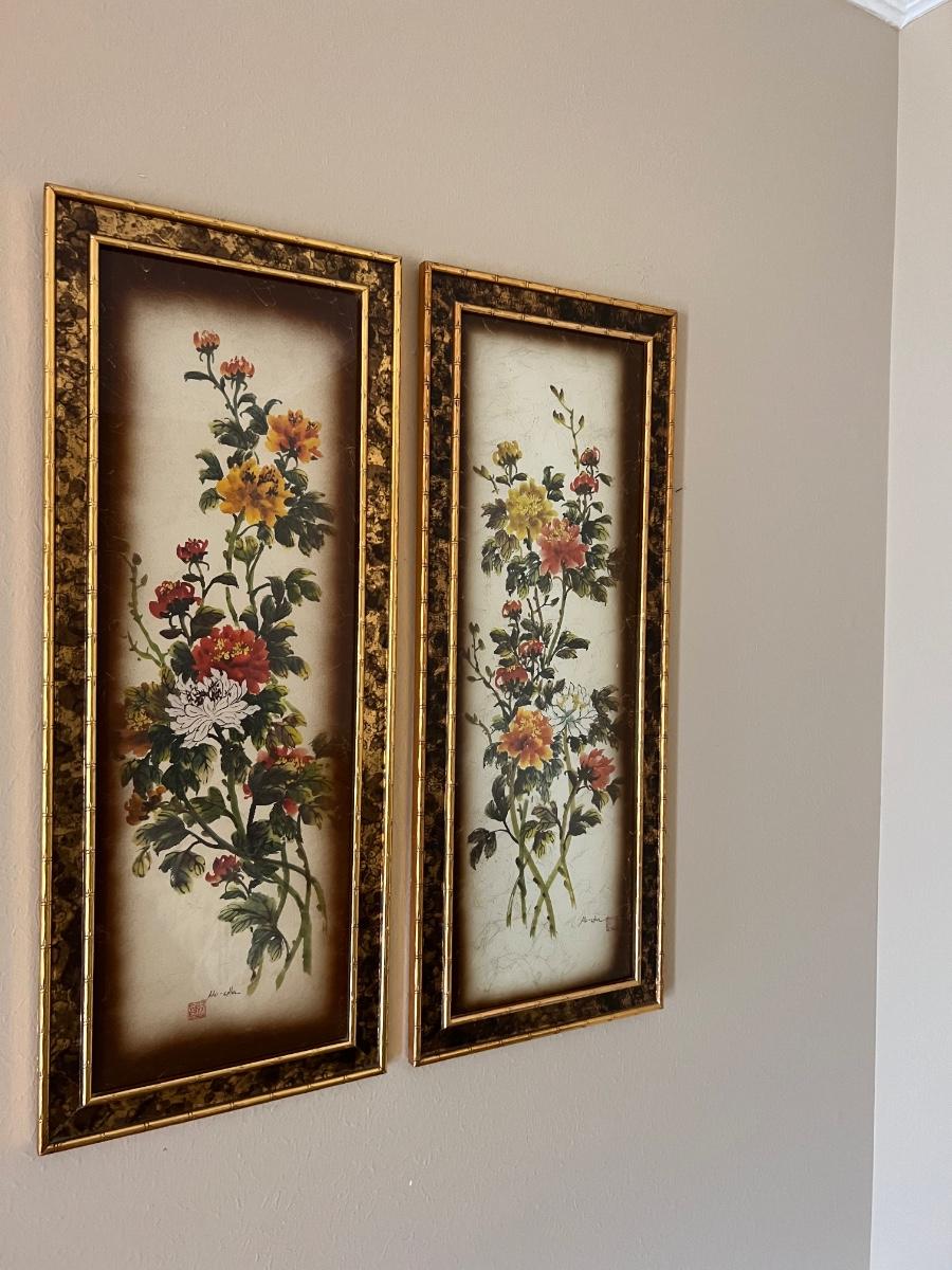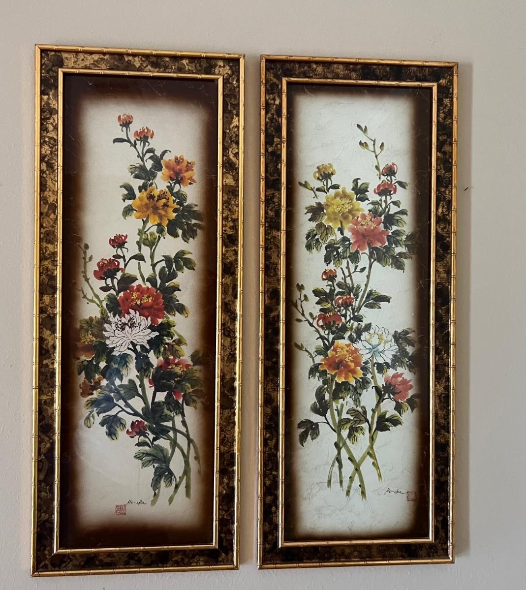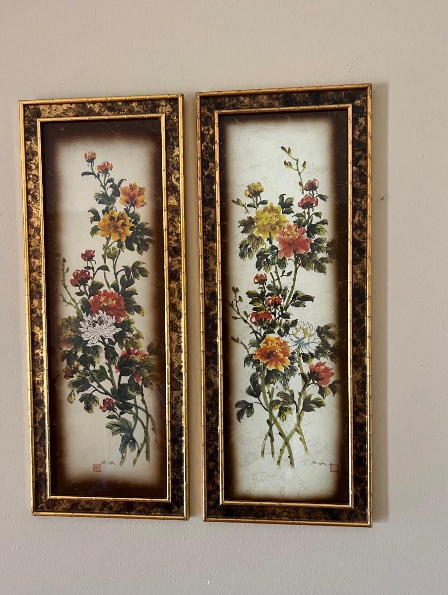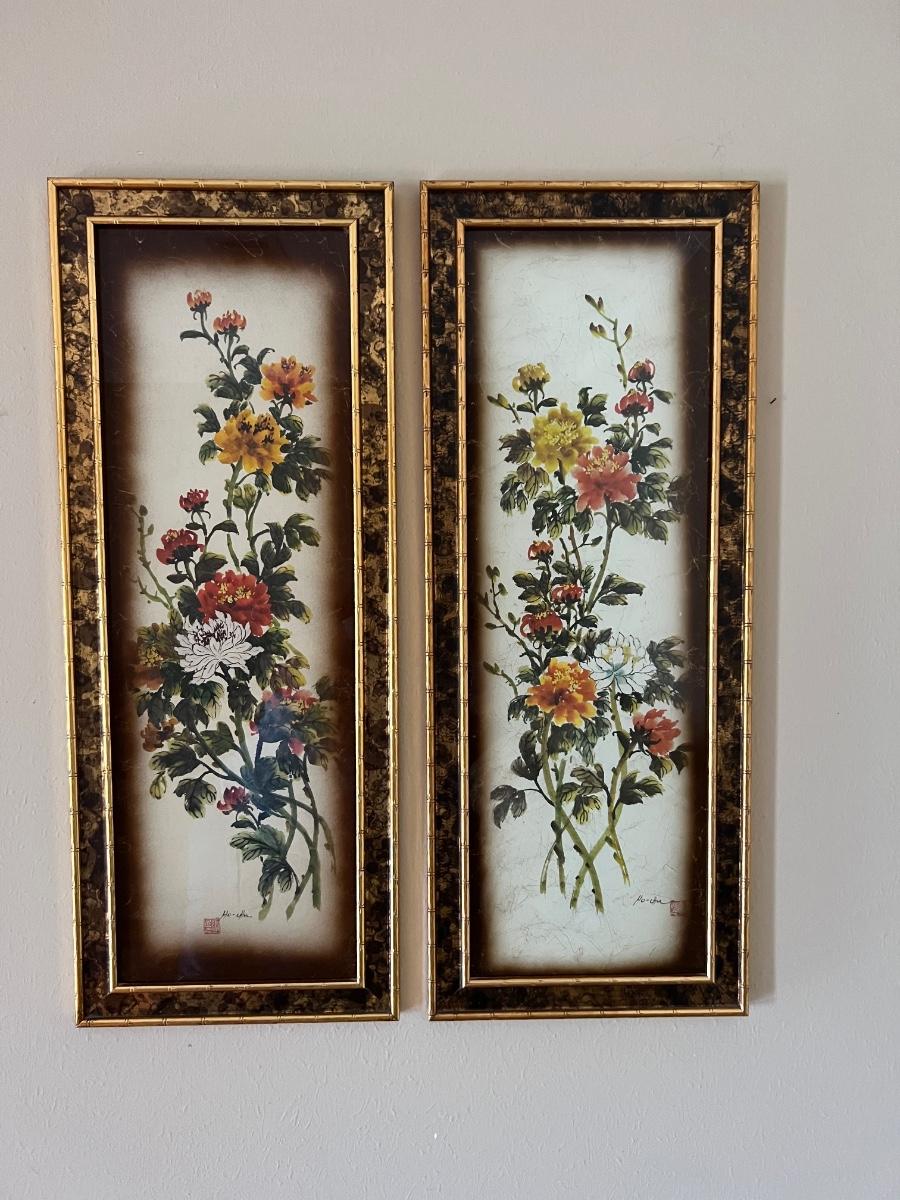 Chinese Floral by HO-CHU Pair measures 33 inches long and 13 inches wide.
