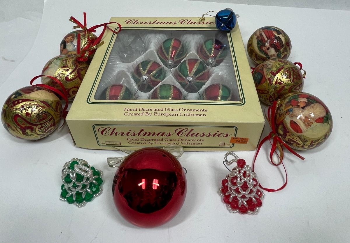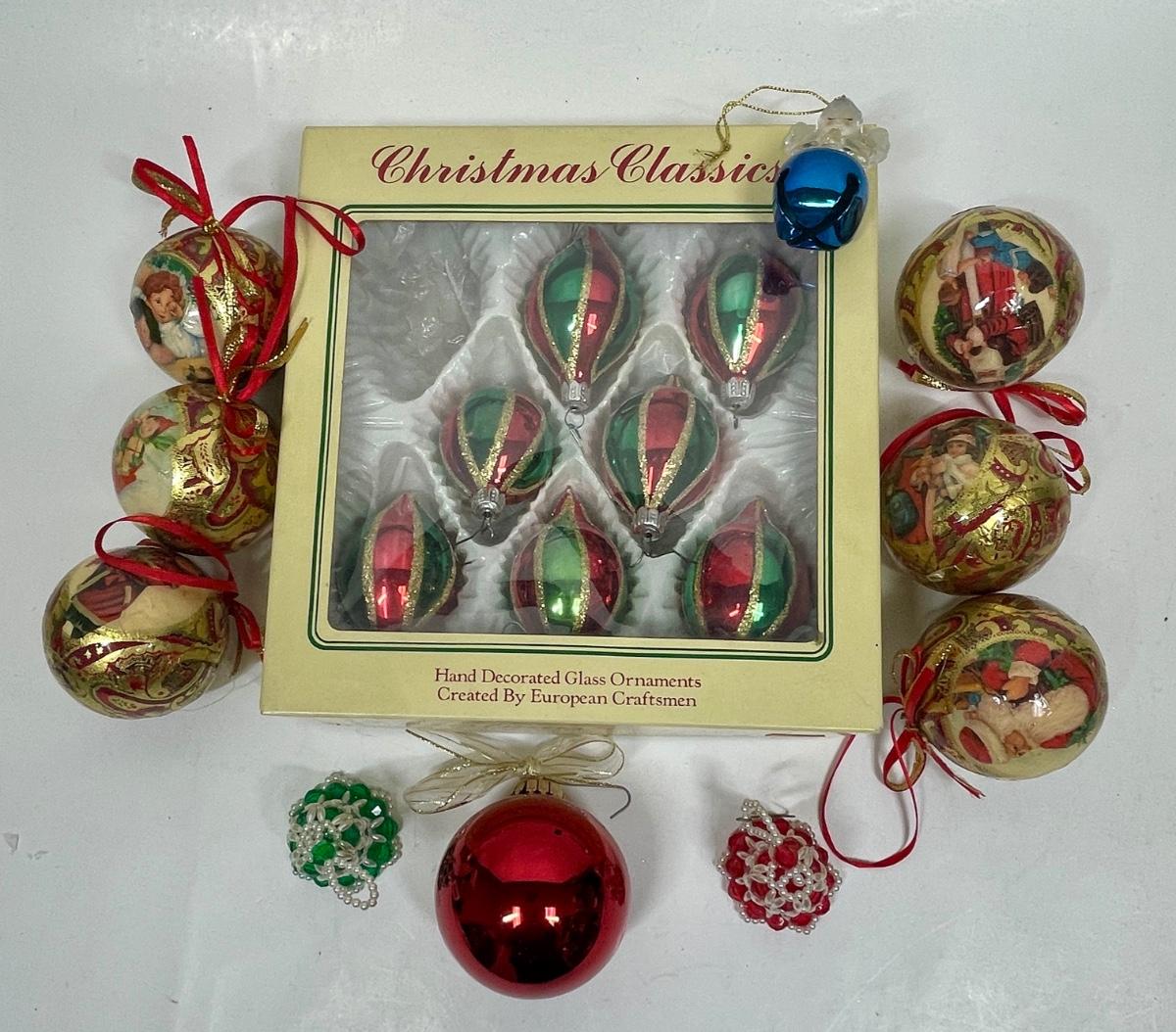 Christmas Tree Ornament Lot teardrop mercury glass paper mache Santas