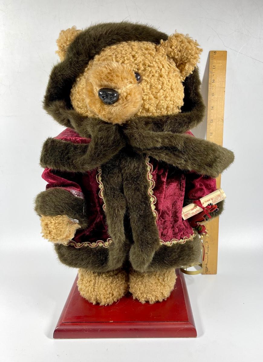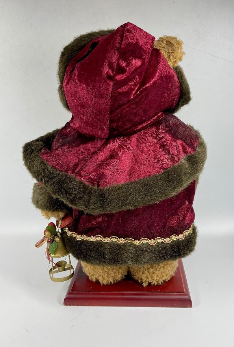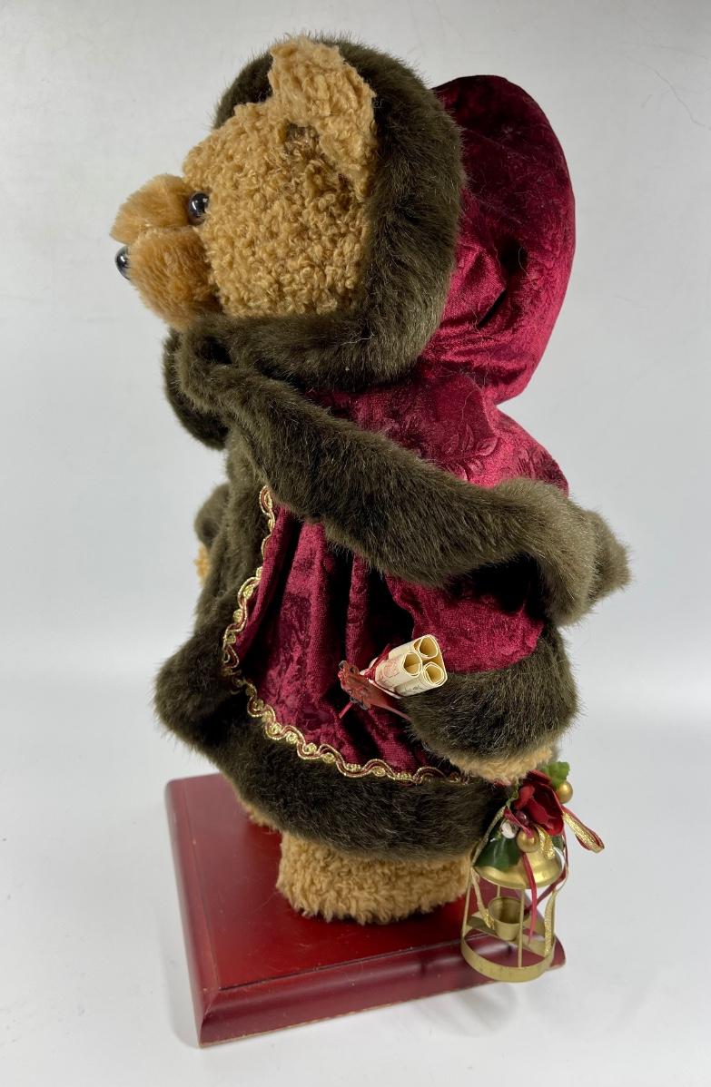 Holiday bear plush figure 18 inches tall. The bear appears to be missing something in his right hand. Otherwise he’s in good condition.
