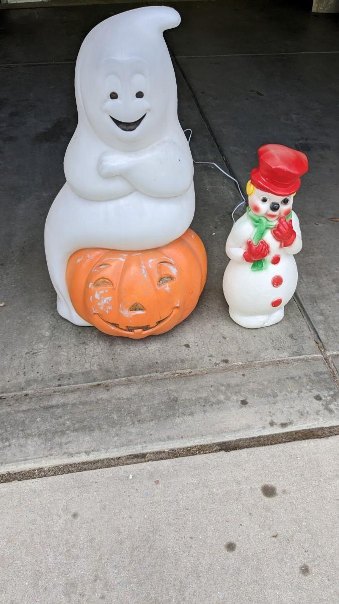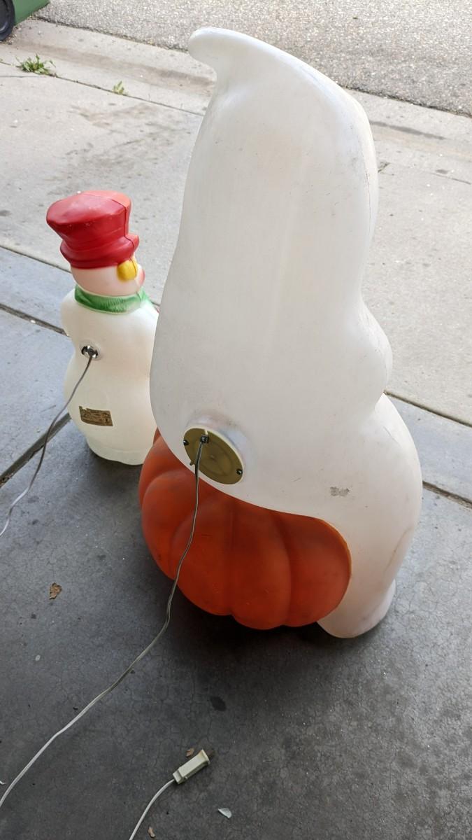 Carolina Plastics 1973 Snowman and Empire Halloween 90's piece that could use some new paint. Both work very well. No shipping.