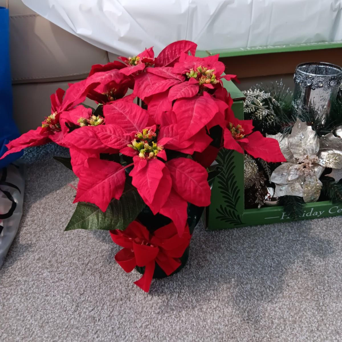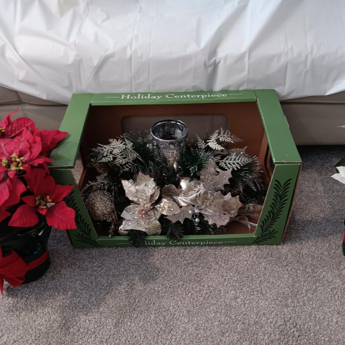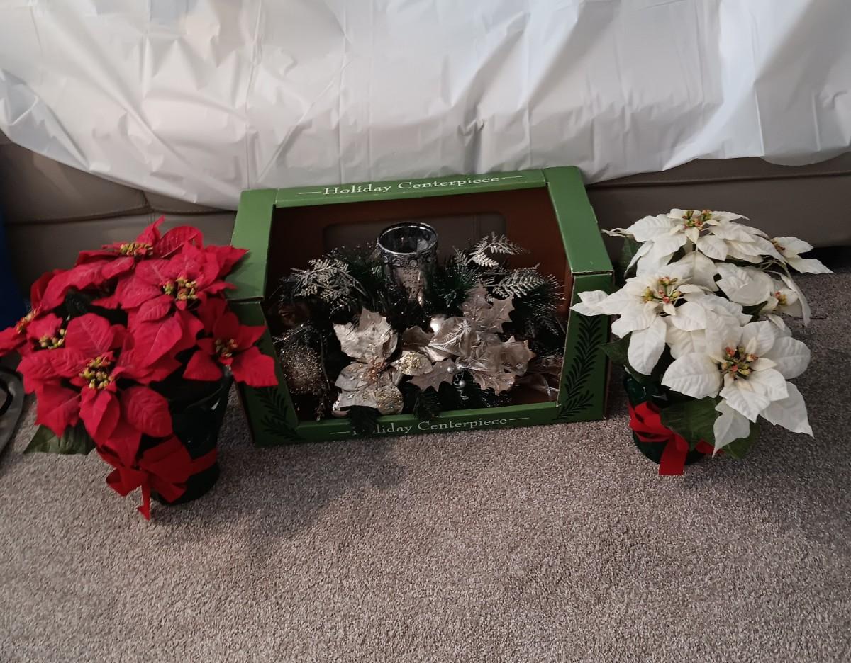 HOLIDAY CENTERPIECE AND 2 FAUX POINSETTIAS
