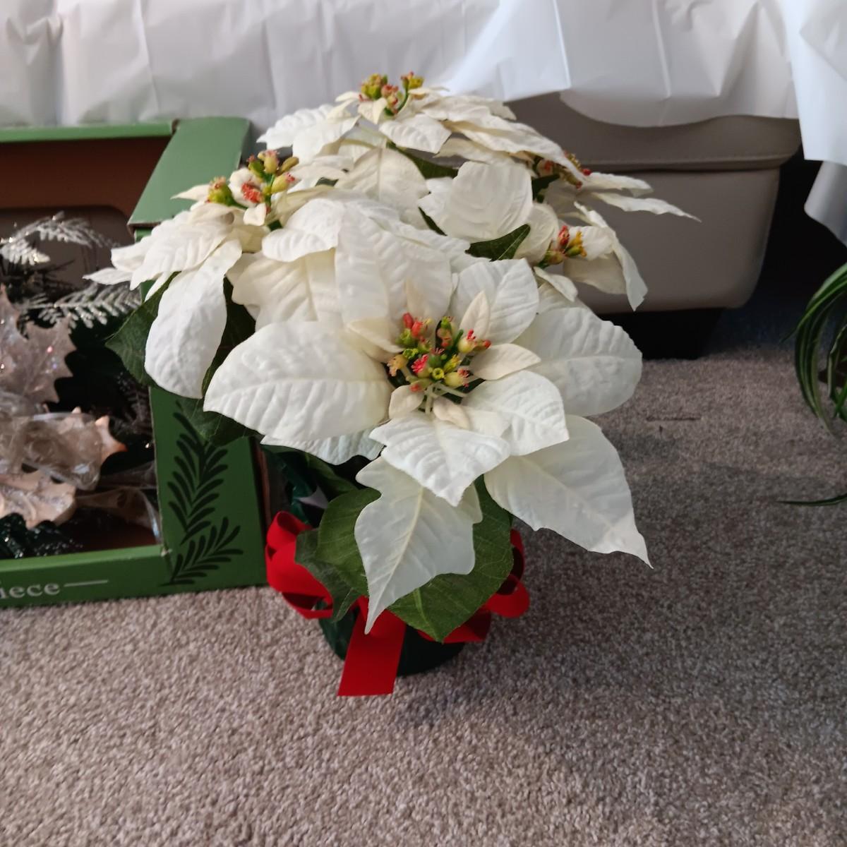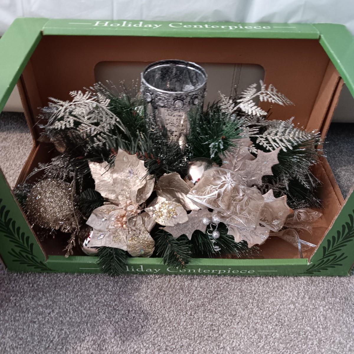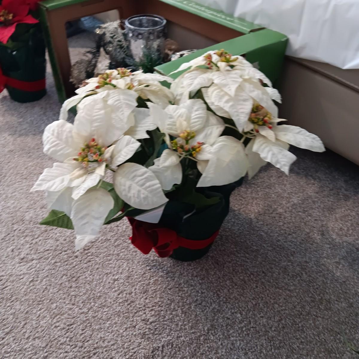 HOLIDAY CENTERPIECE AND 2 FAUX POINSETTIAS