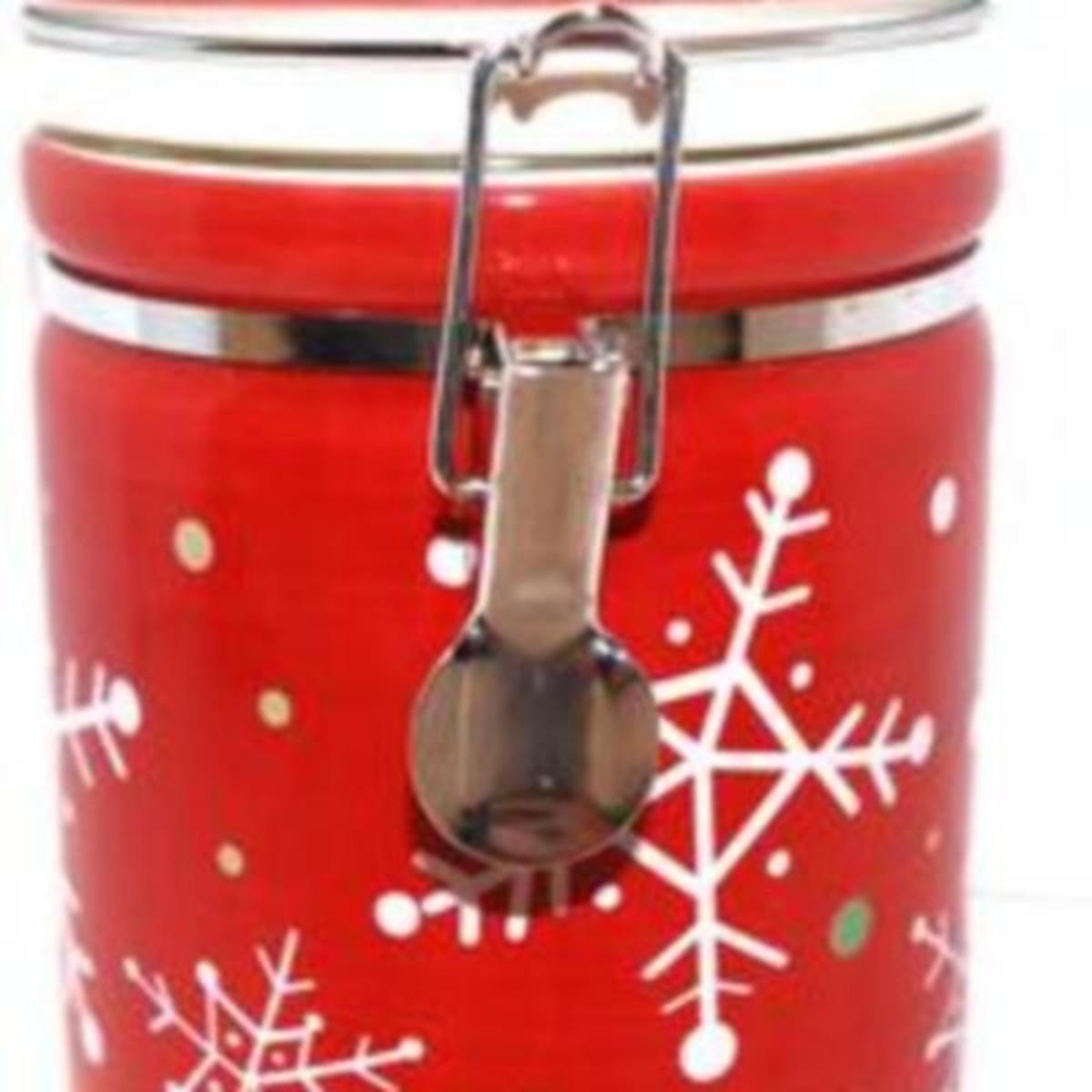 Holiday Ceramic Locked Cannister 5 1/2" H x 4 1/4" Diam. & "Fitz+ Floyd" Carrot Top Cookie Jar *" H x 5" Diam.