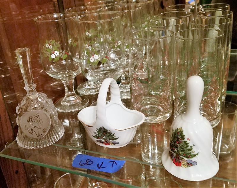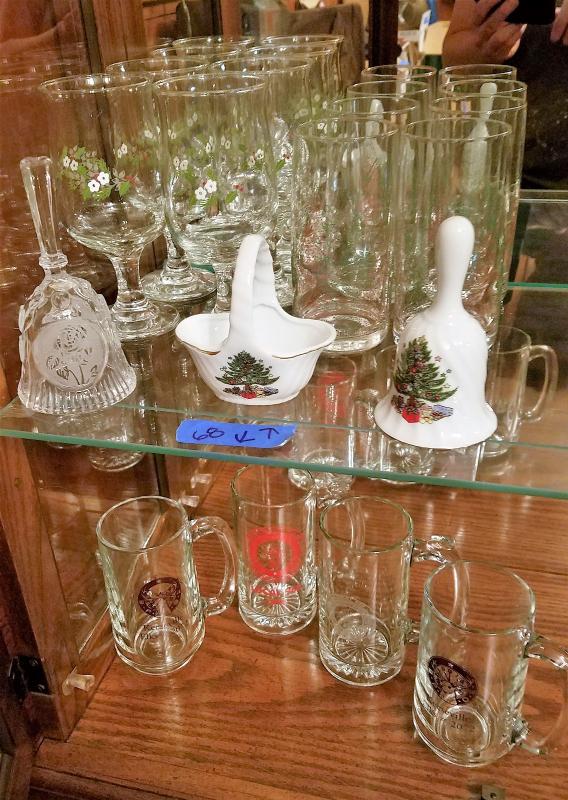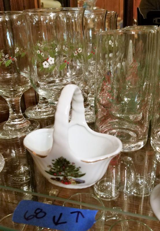 12 holiday goblets, 1 coffee mug and 1 Ivy and Holly with a basket