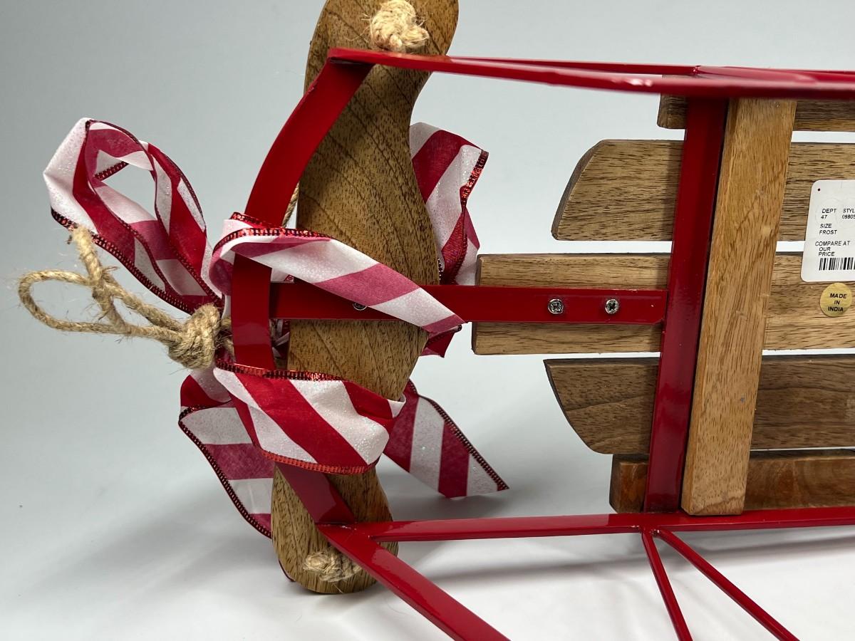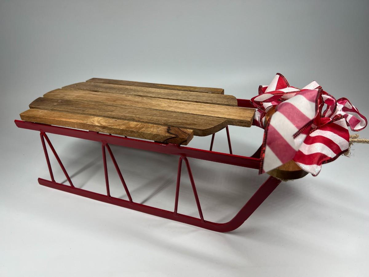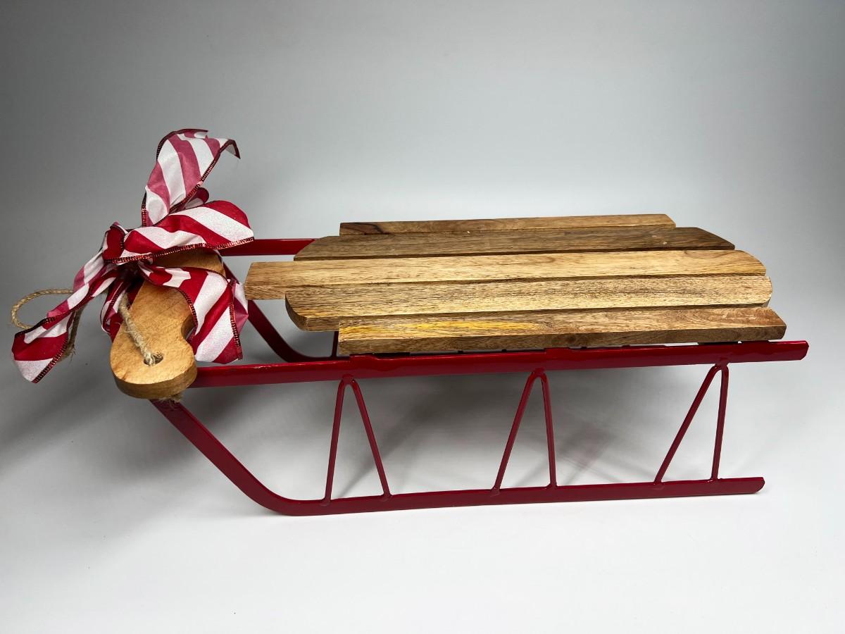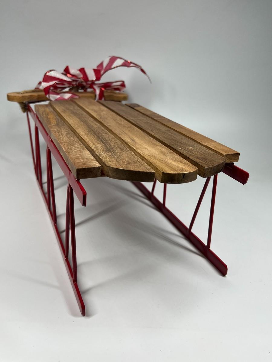 Holiday Christmas Home Decor Wood & Metal Snow Sled