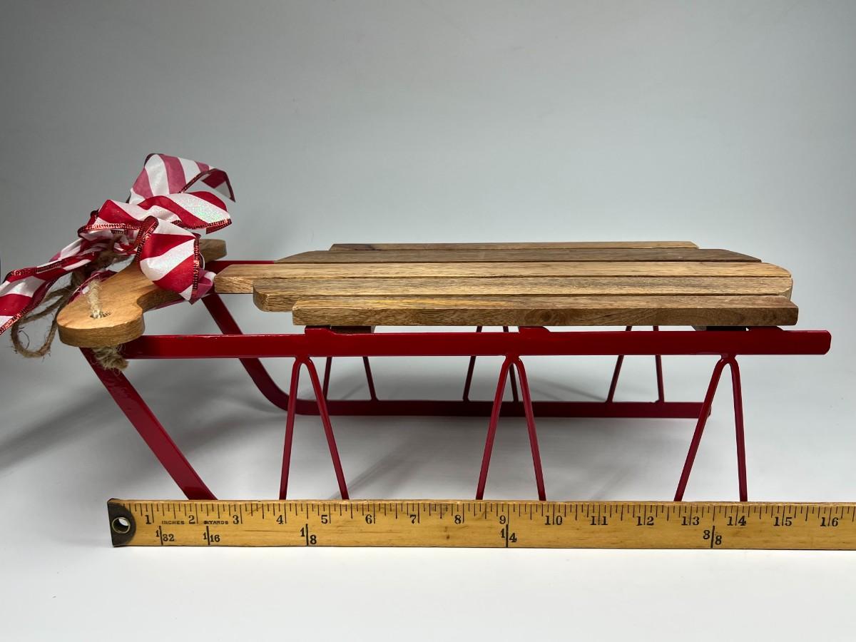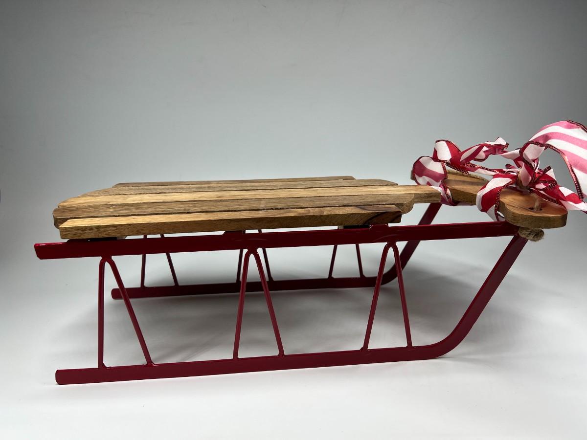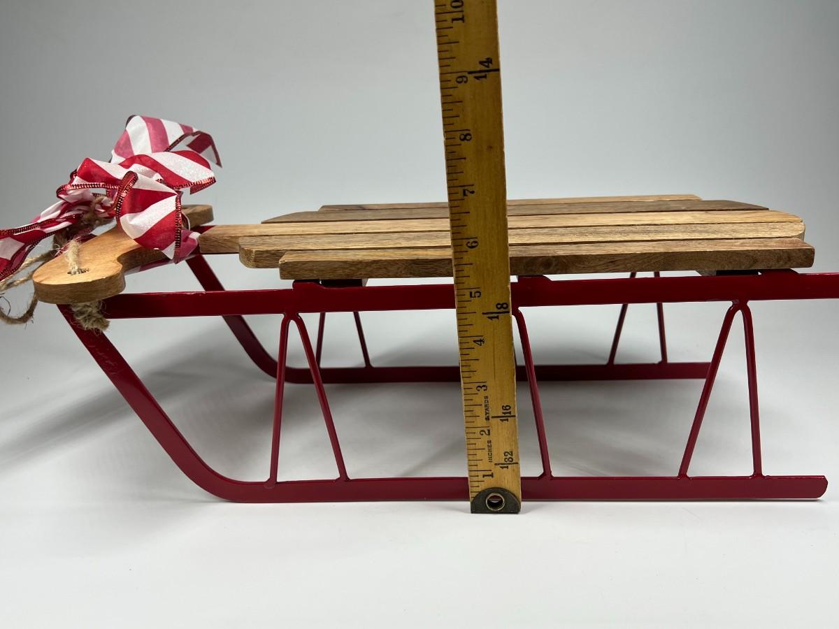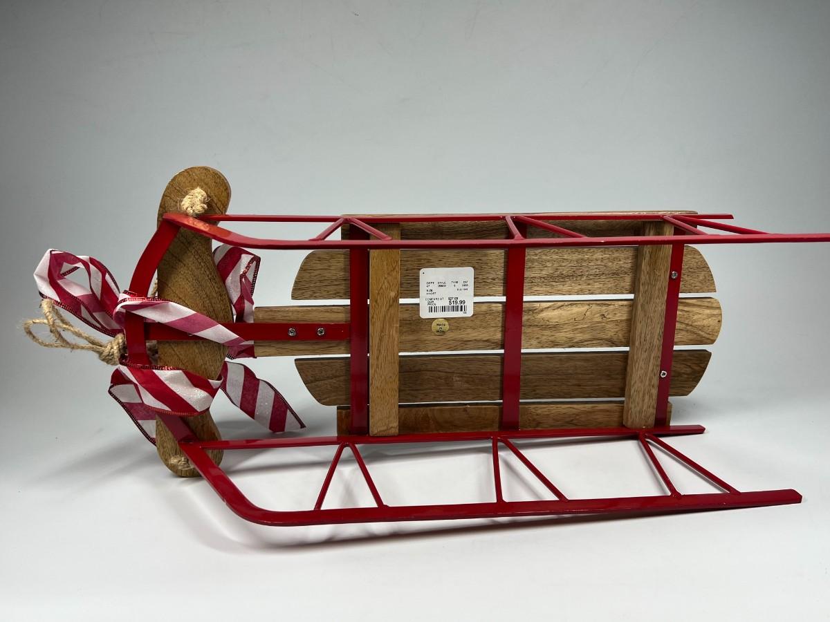 Holiday Christmas Home Decor Wood & Metal Snow Sled