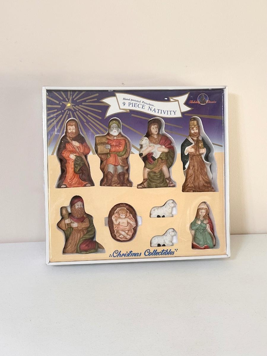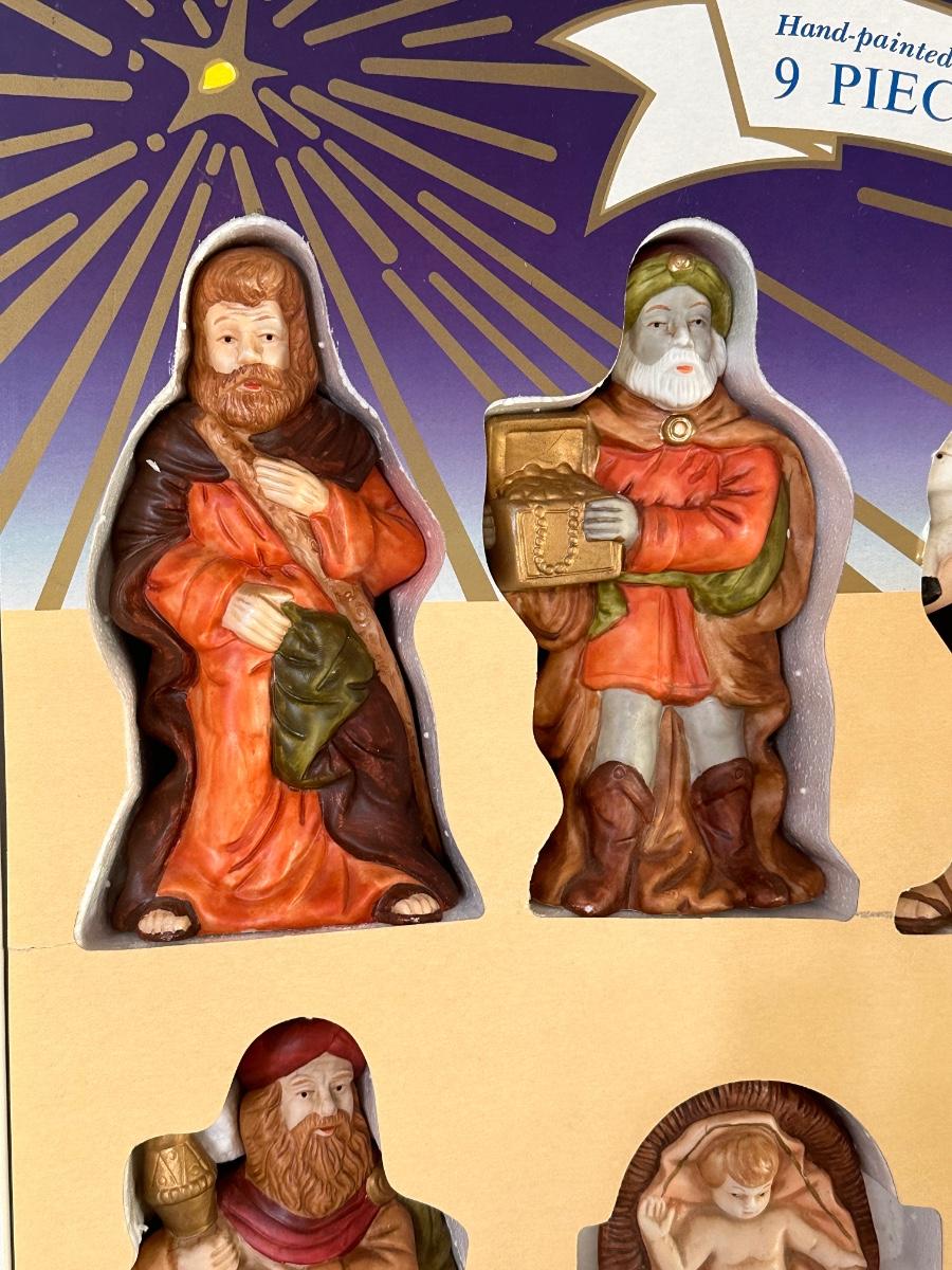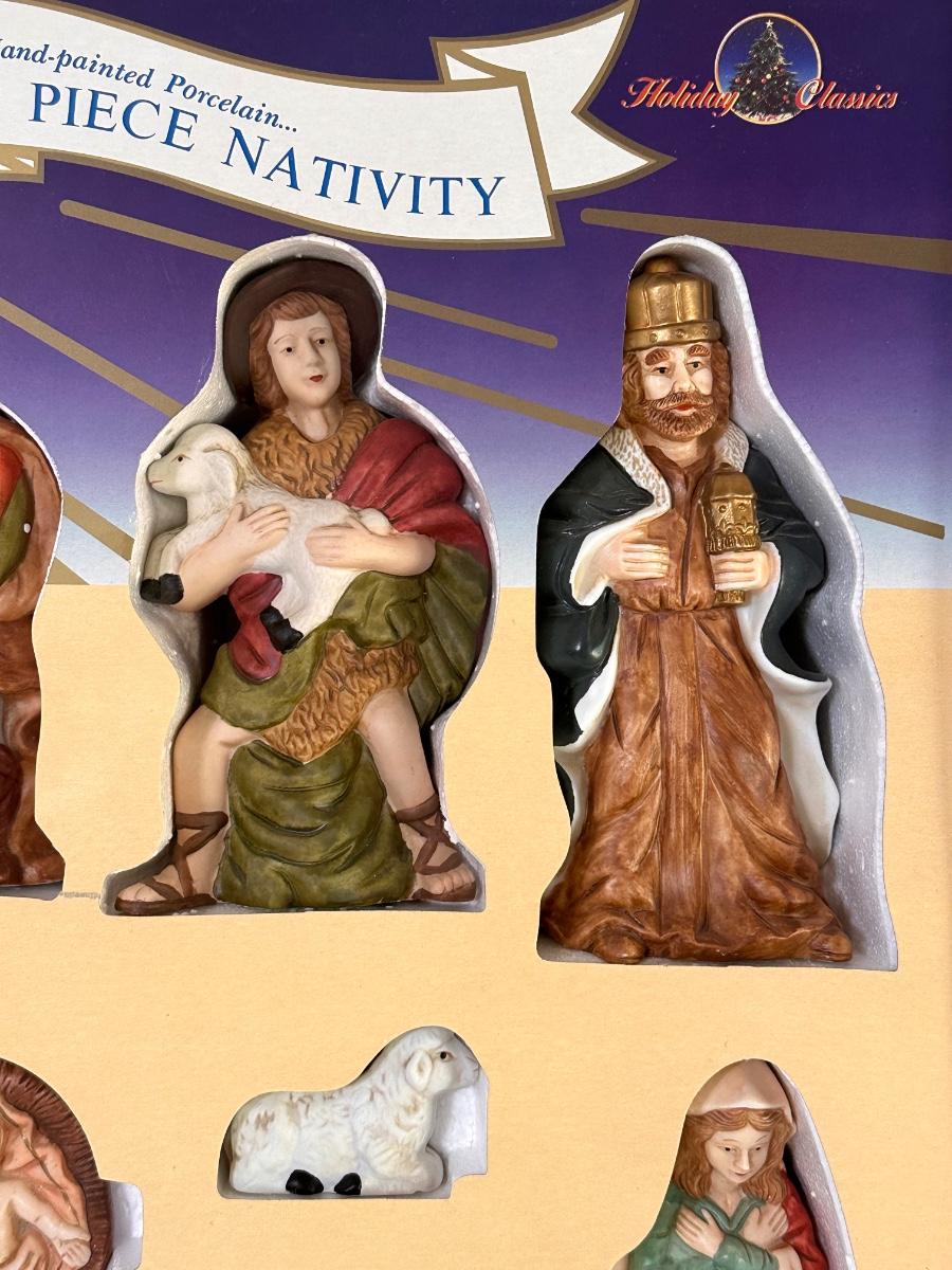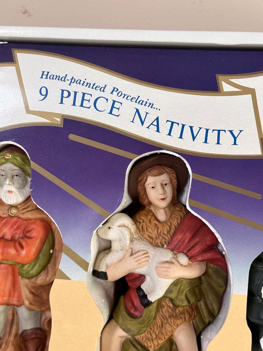 HOLIDAY CLASSICS ~ 9 Piece Hand Painted Porcelain Nativity