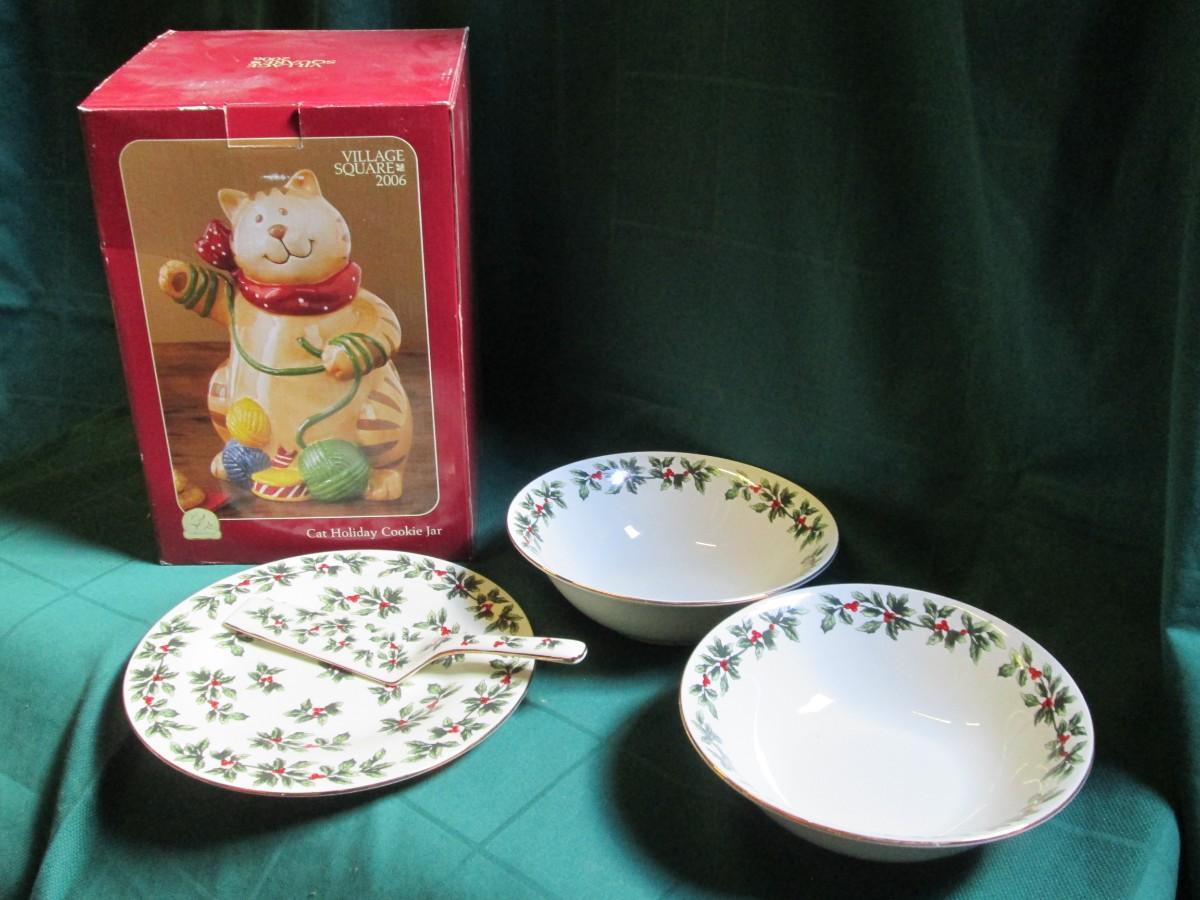 Holiday Cookie Jar, Cake Plate and Bowls