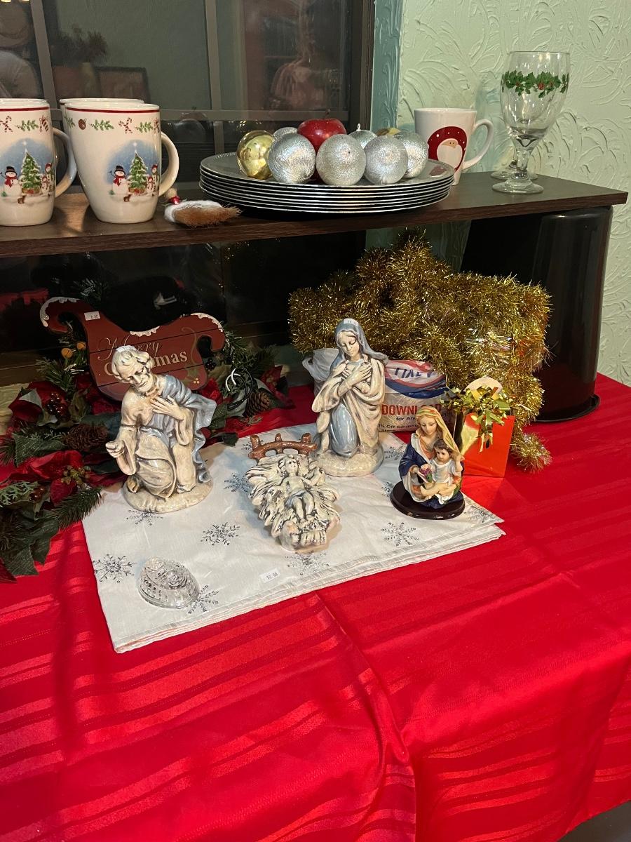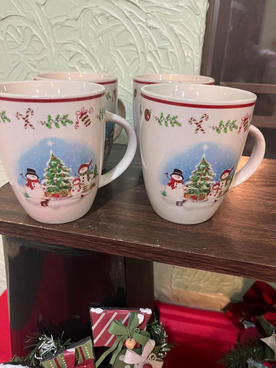 Christmas mugs, charger plates, ornaments & other mic. Decor