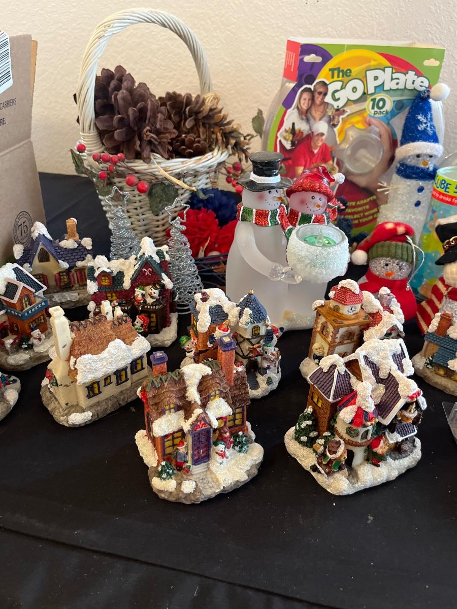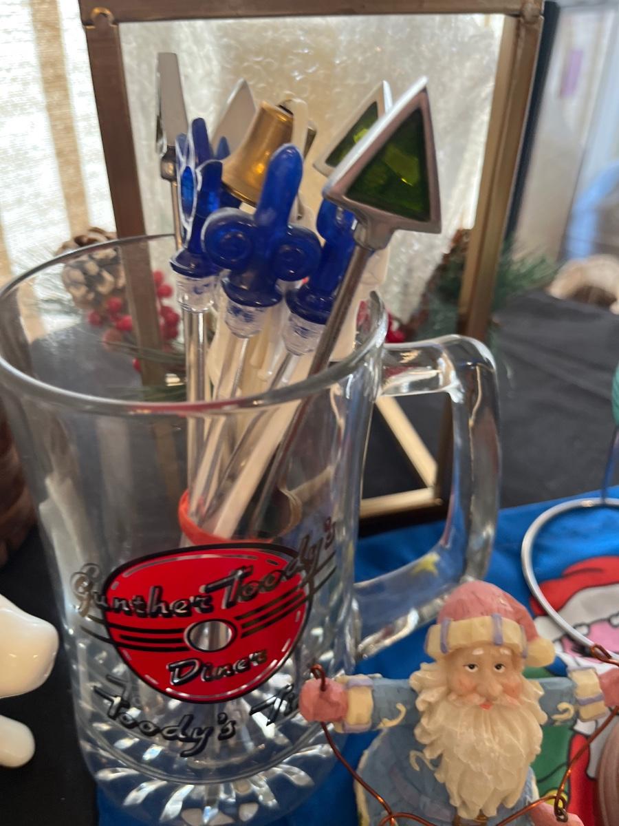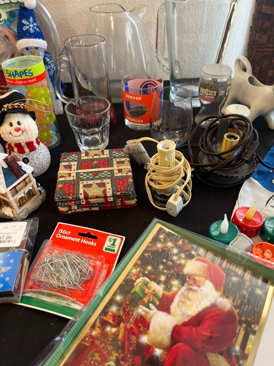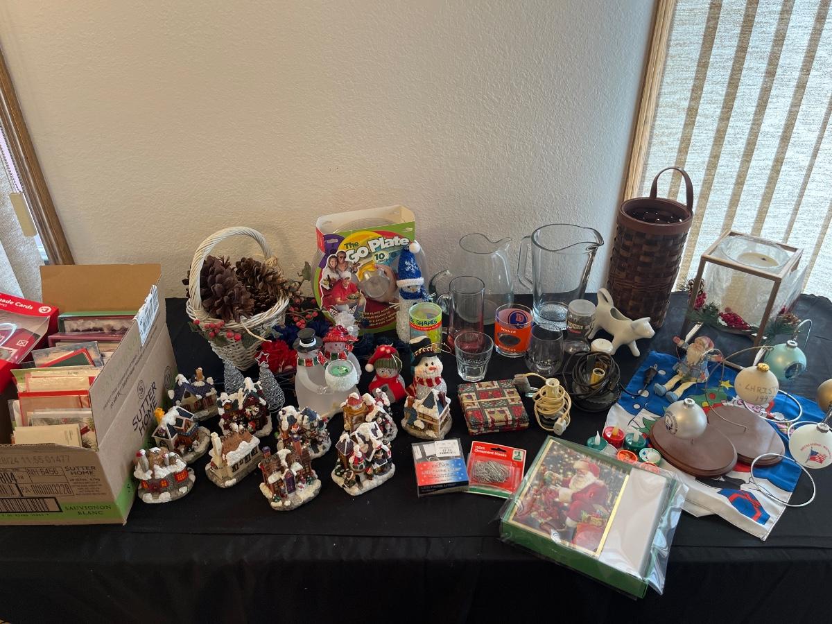 Holiday decor, glass pitchers, stir sticks, Breckenridge ornaments