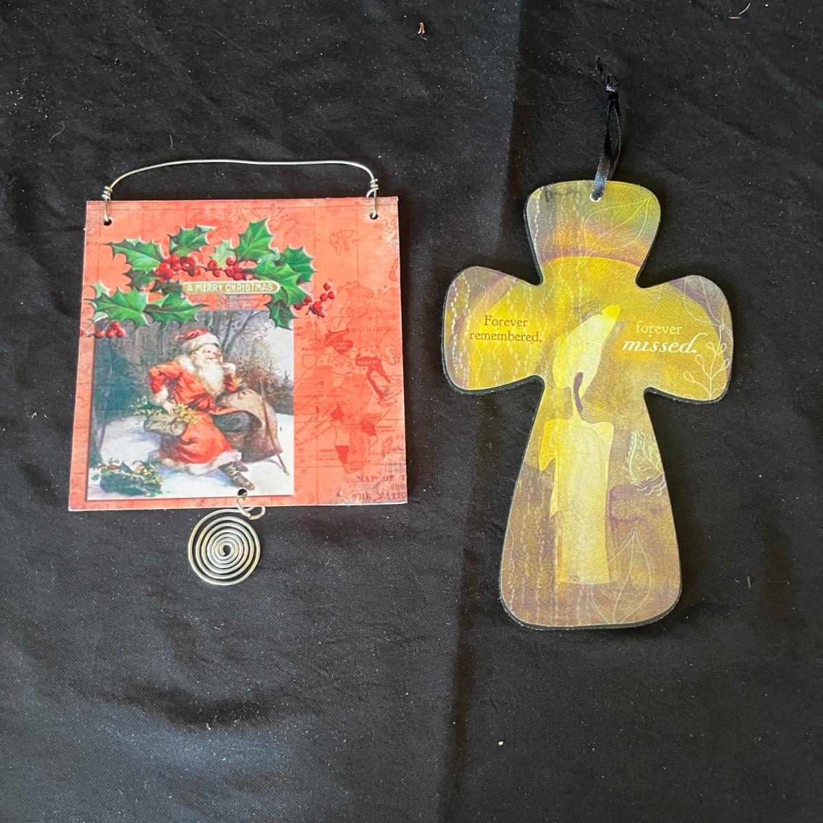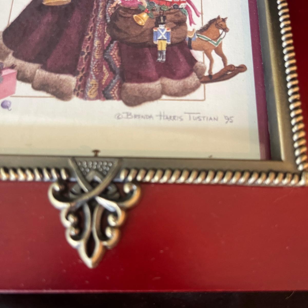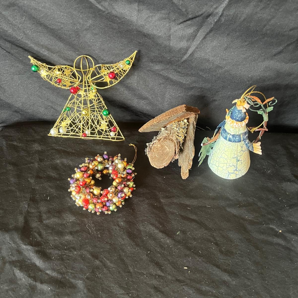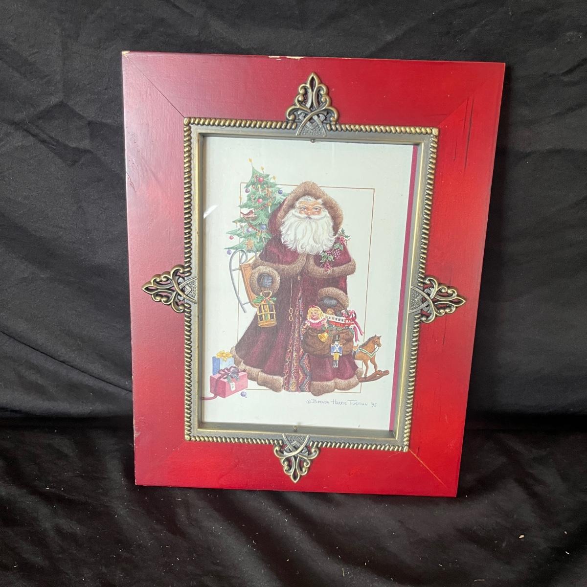 Lot includes a pencil signed wood framed print by Brenda Harris Tustian, ceramic leaf tray, metal and ceramic ornaments, art, figurines and more. Framed Tustian frame measures 7.5” x 9.5”H.