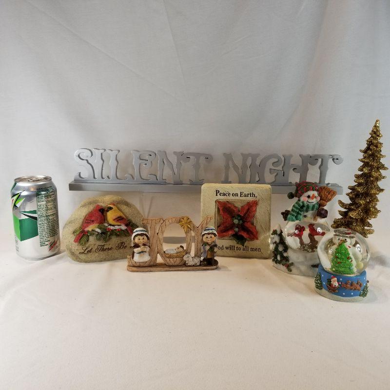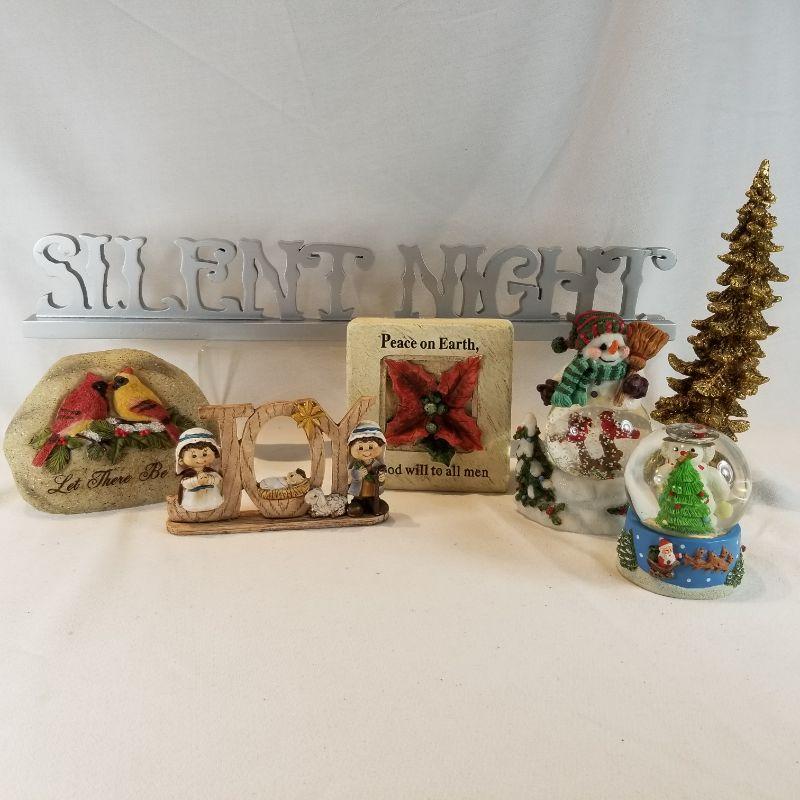 This lot is a nice collection of 7 fun resin holiday decor items. All are in very good condition and ready to enhance your holiday celebrations.