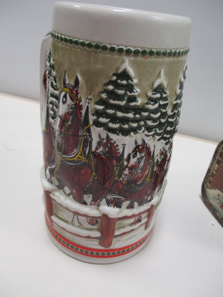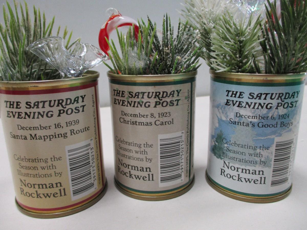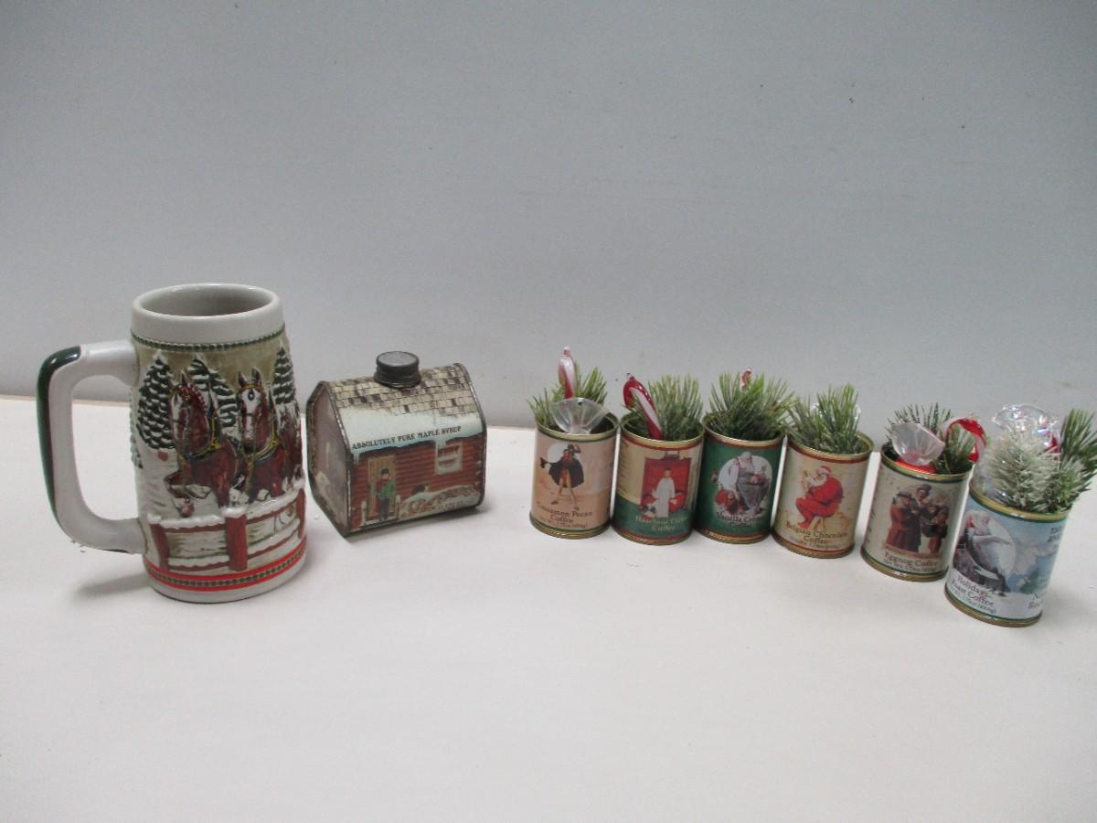 Holiday Decorations - Budweiser Stein - Maple Syrup Tin - Saturday Evening Post Tins
