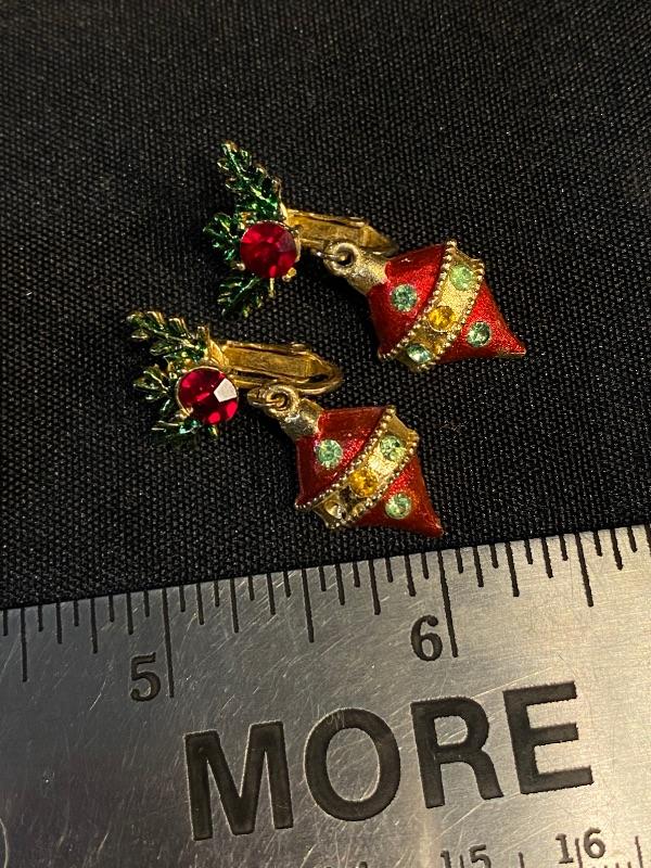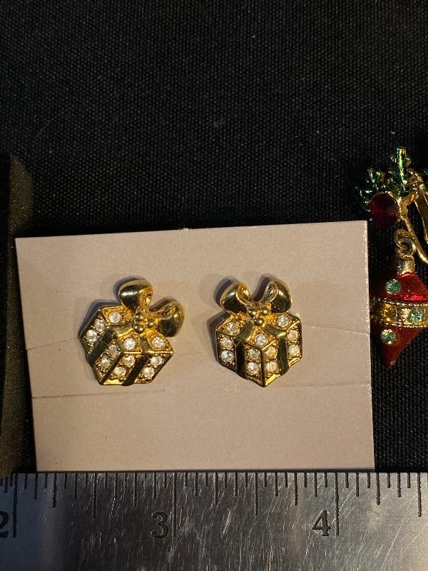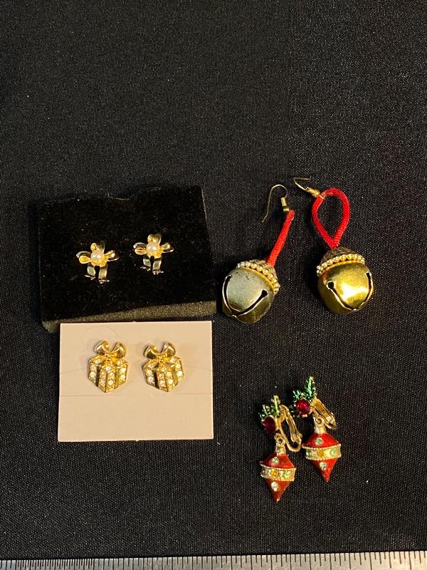 4 pairs of Holiday Earrings. 3 pairs are for pierced ears, 1 pair is clip style.