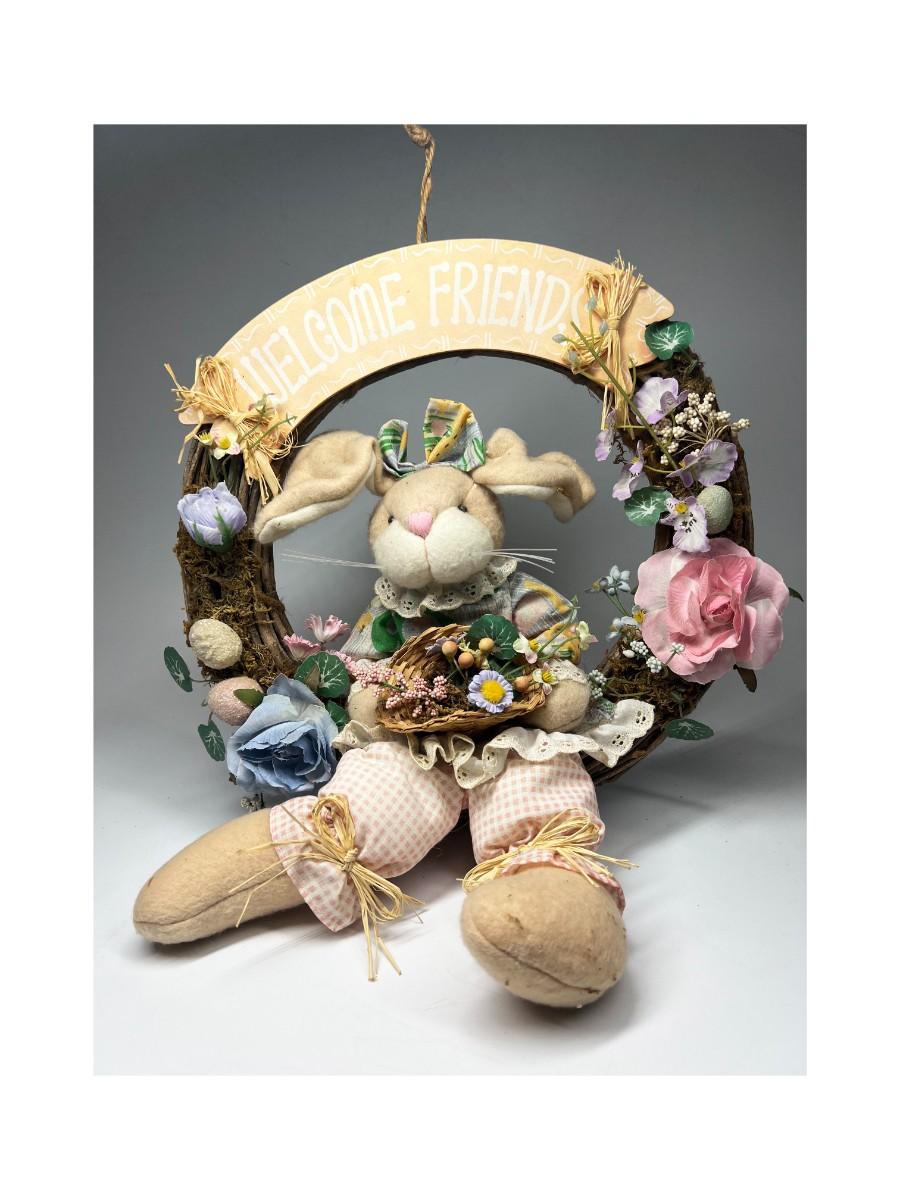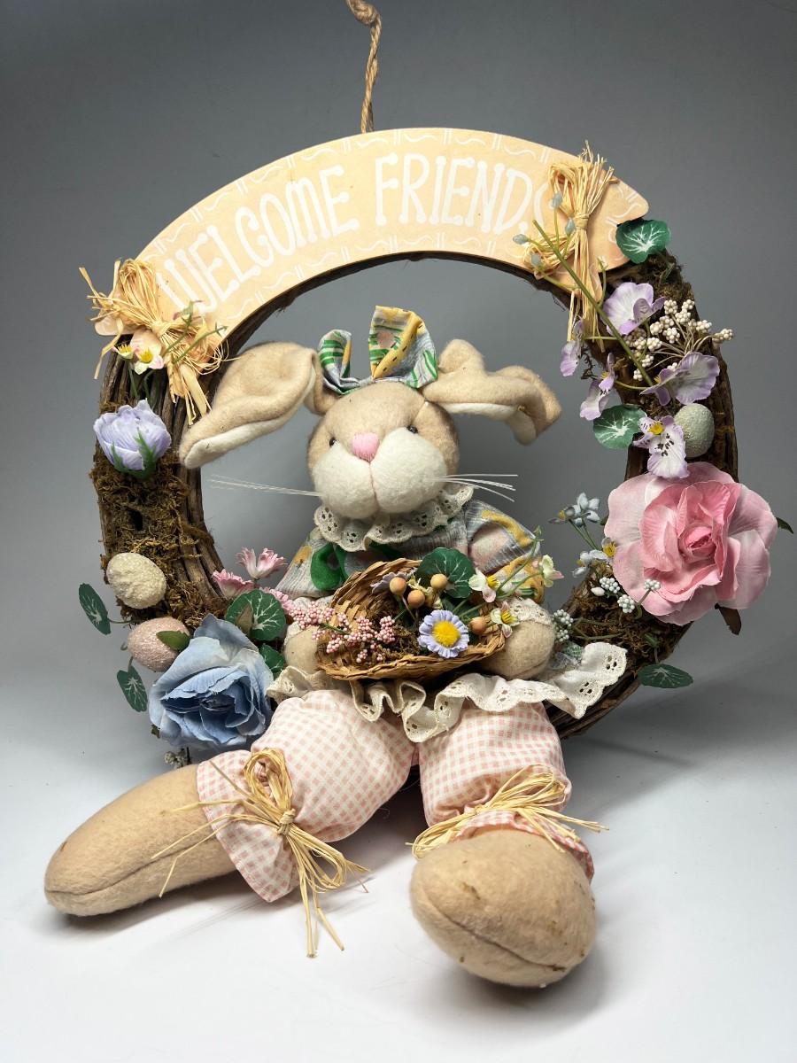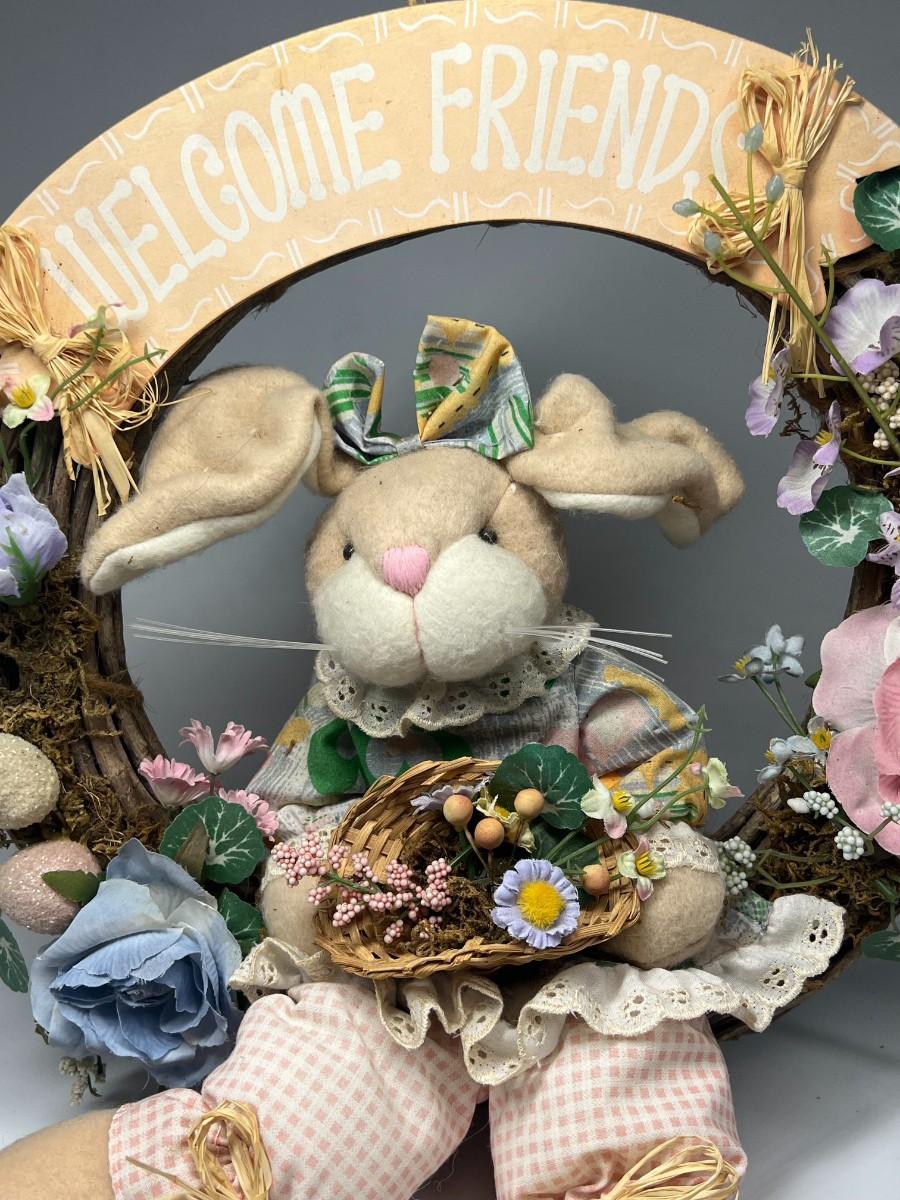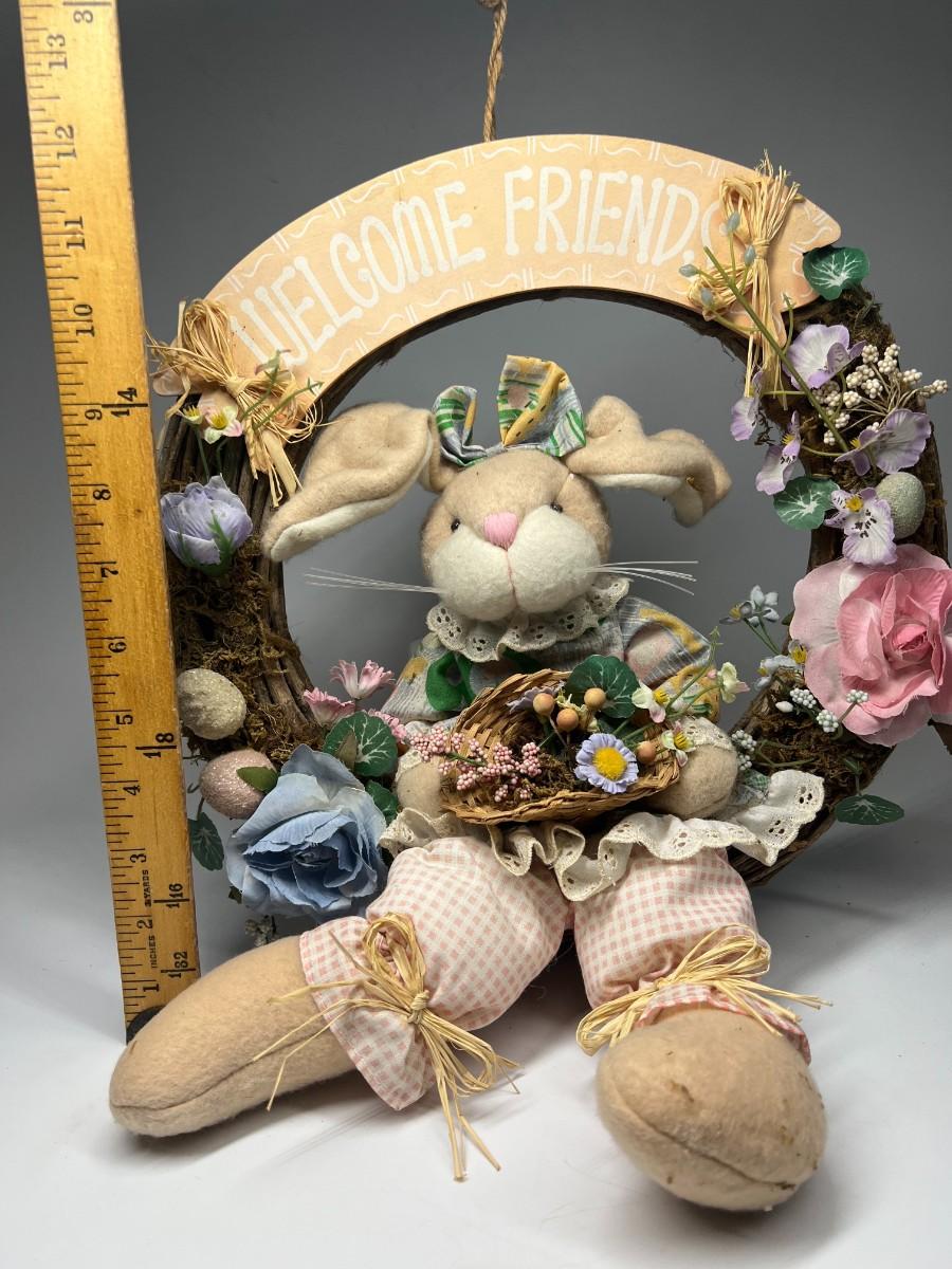 Holiday Easter Bunny Hanging Felt & Wood Welcome Friends Wreath