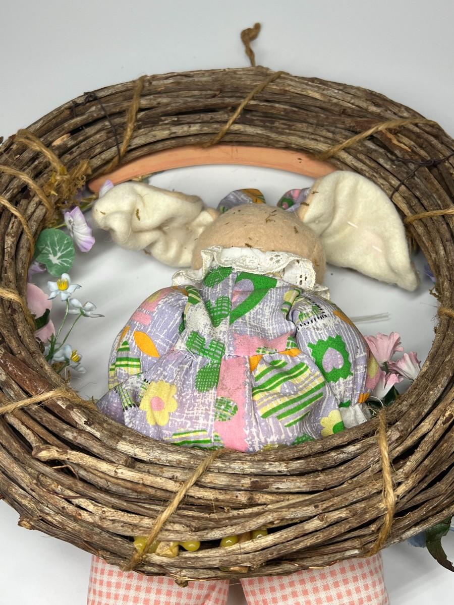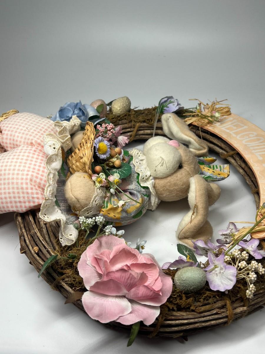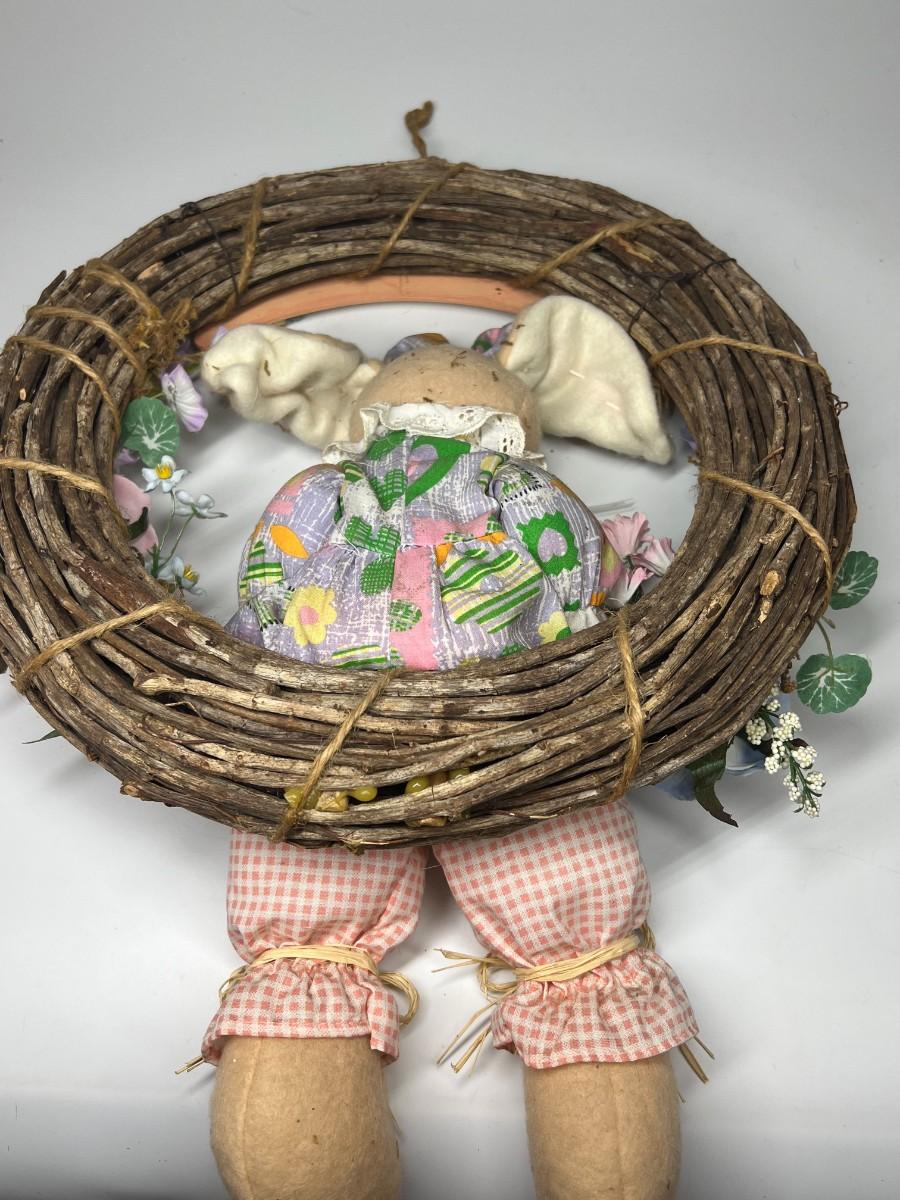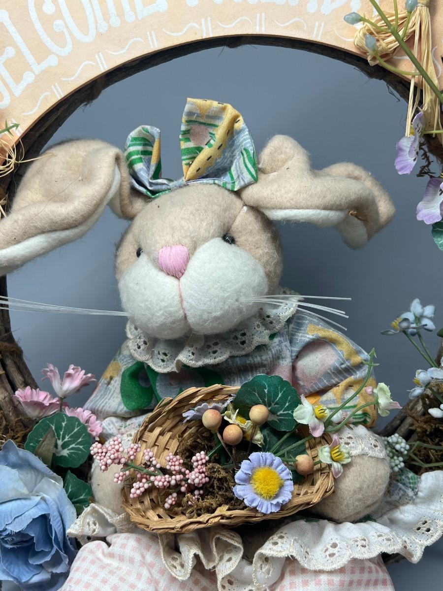 Holiday Easter Bunny Hanging Felt & Wood Welcome Friends Wreath