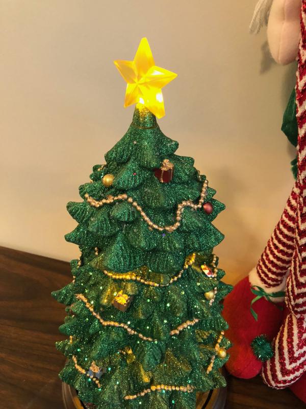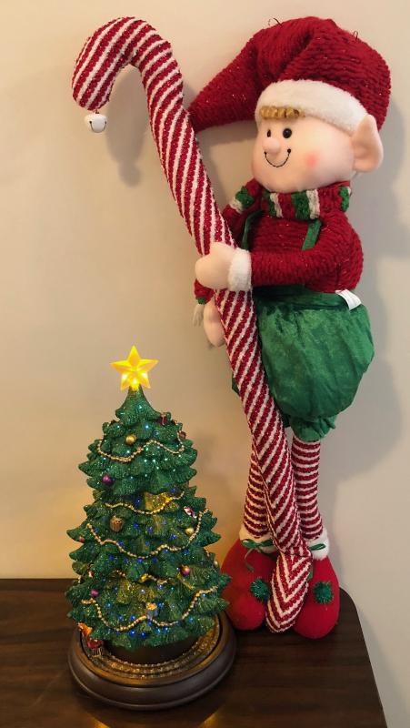 Here is a 28" tall holiday elf figure and a 16" tall Musical, animated Christmas tree...Good condition on both...