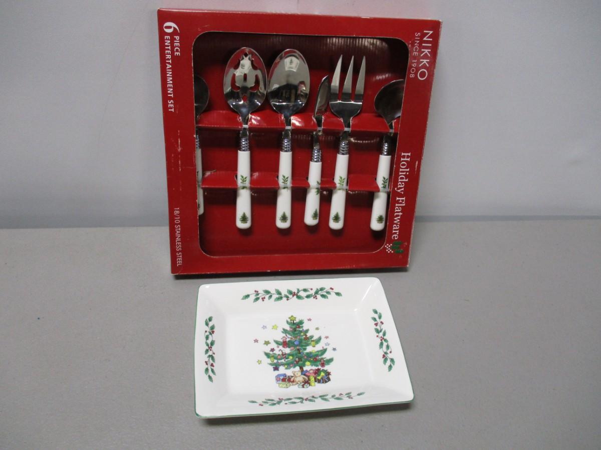Holiday Flatware 6 Piece Entertainment Set & 3/4" Rectangular Tray