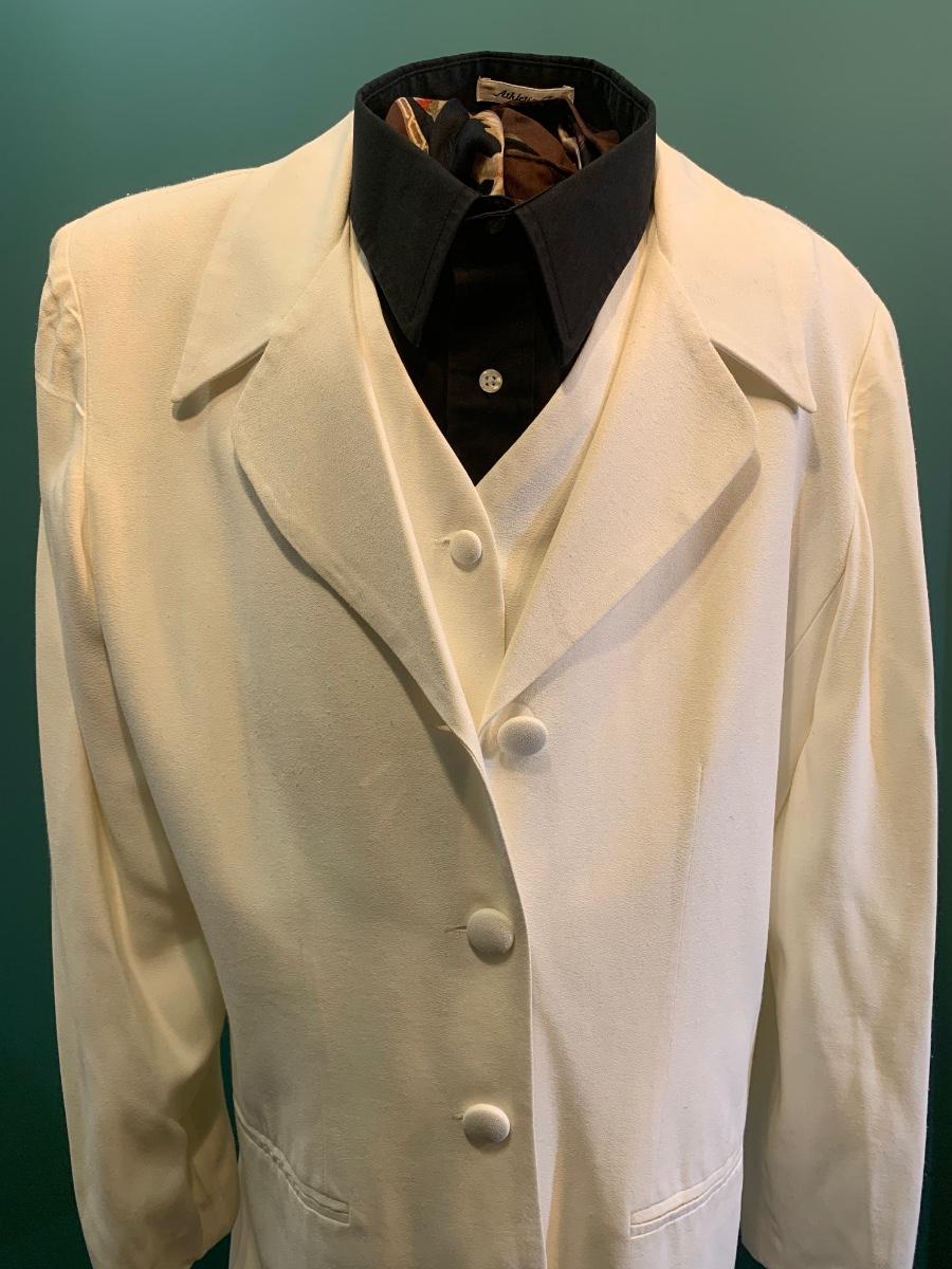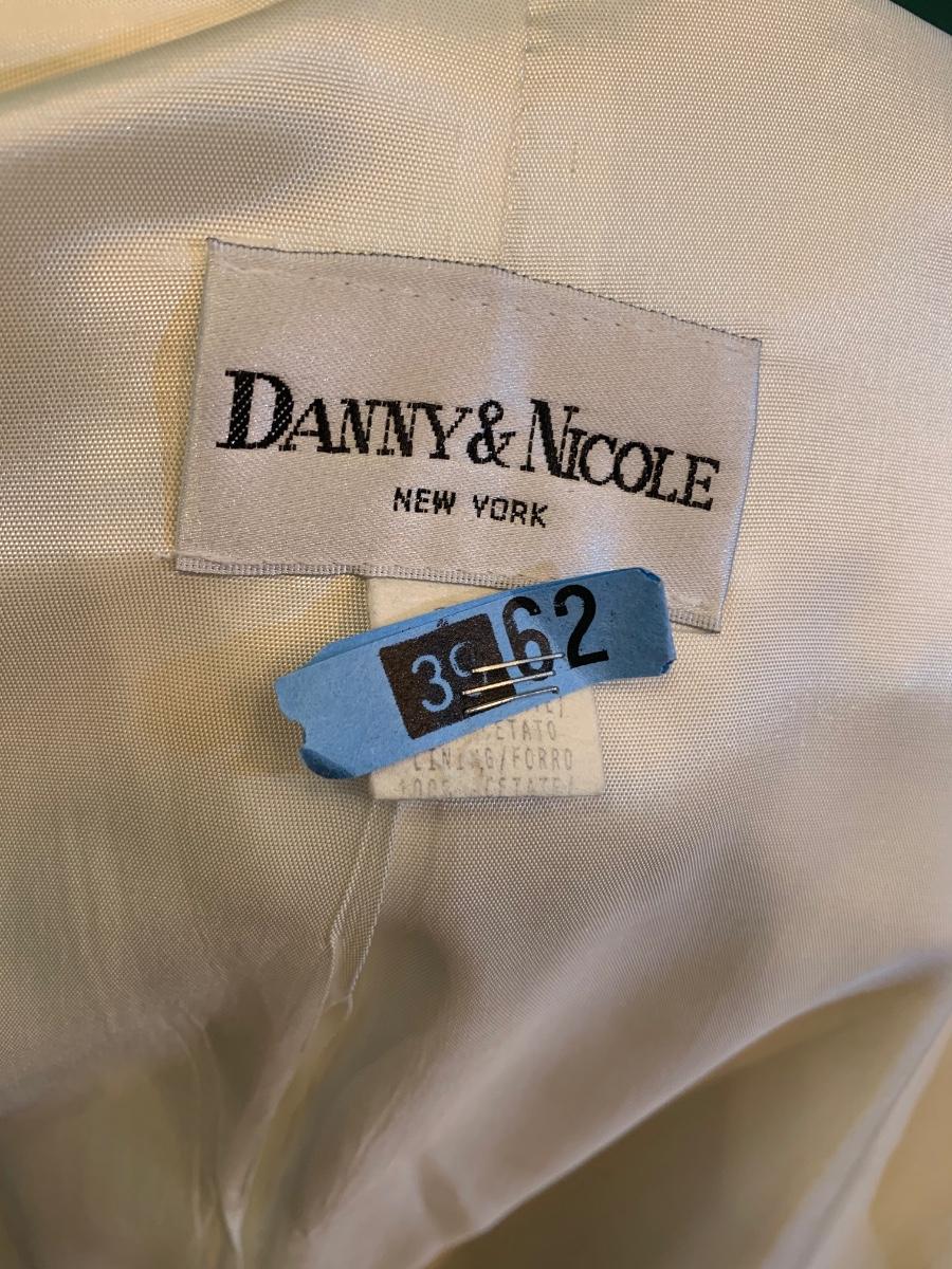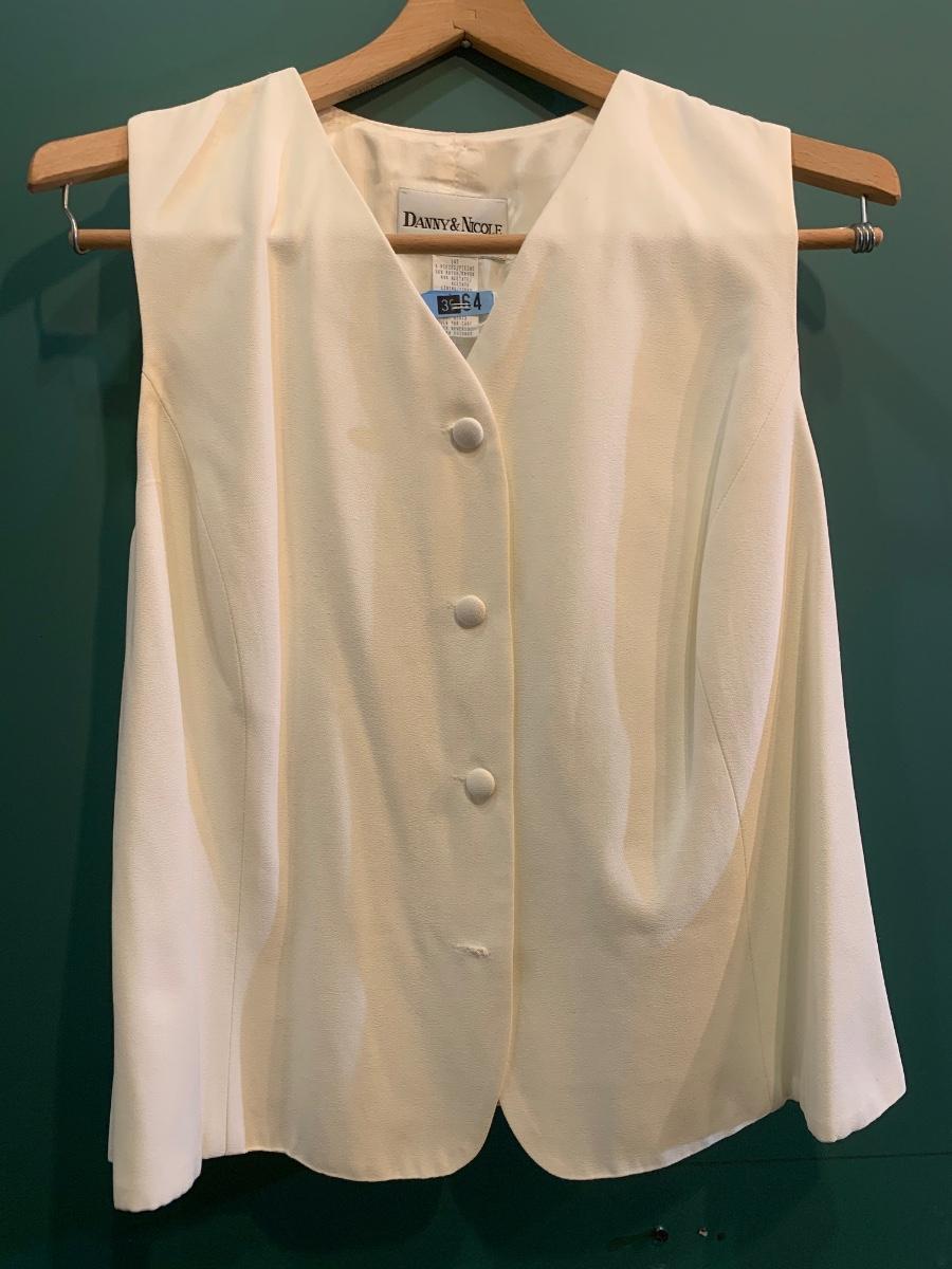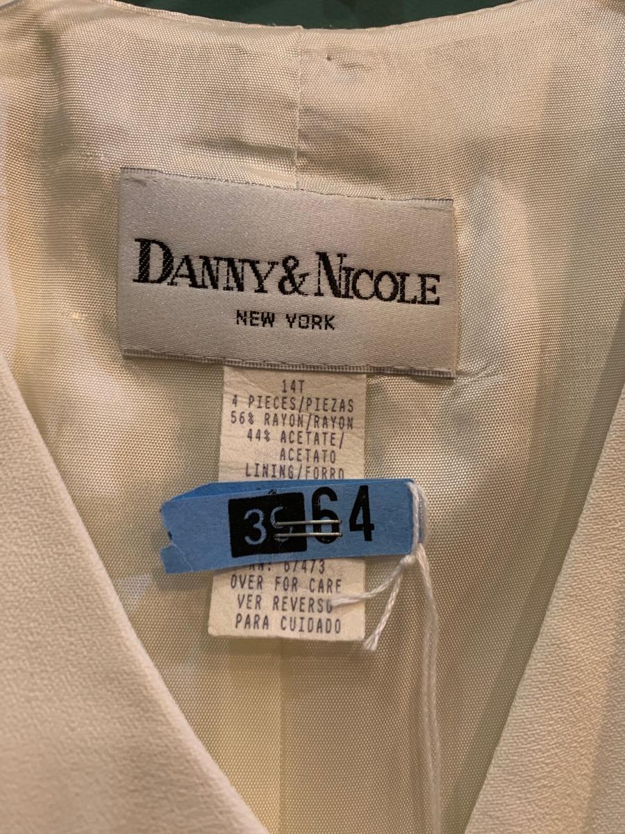Look sharp and exude timeless glamour at your holiday functions with this exquisite ensemble from Danny & Nicole. This size 14T white blazer, adorned with four buttons, is paired perfectly with a matching vest, creating a sophisticated and festive look. Immerse yourself in the allure of tailored glamour, making a statement at every celebration. Embrace the impeccable craftsmanship and style of Danny & Nicole, ensuring you shine brightly at every holiday gathering. Accessories not included,