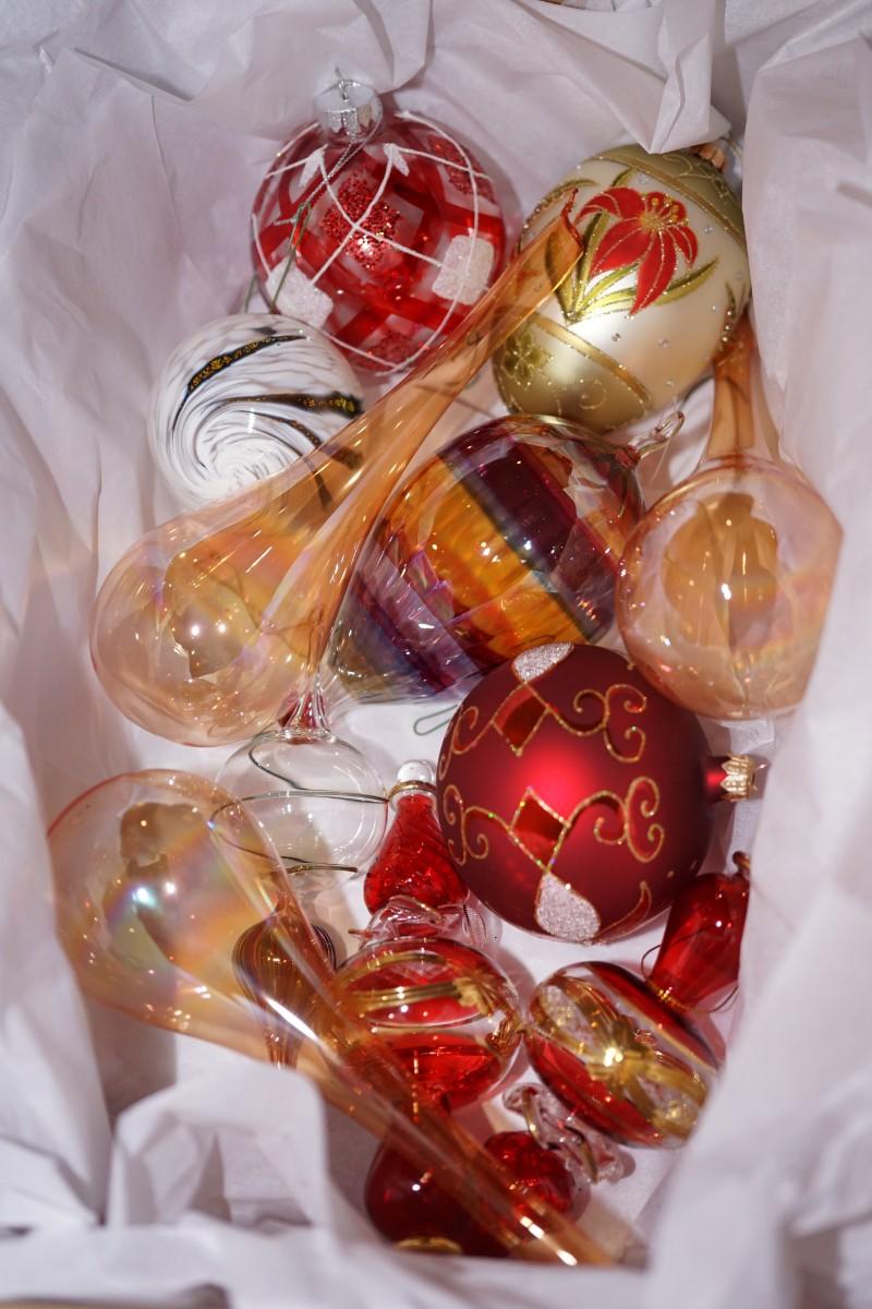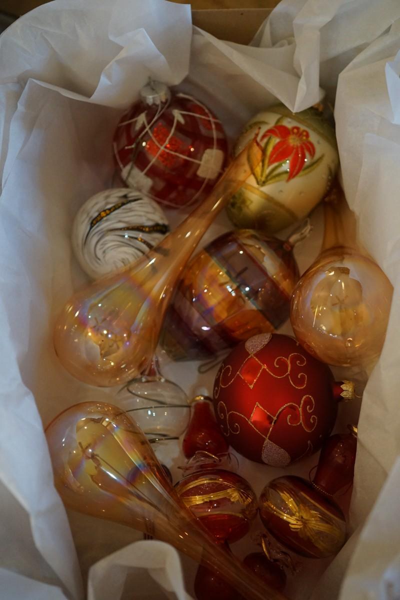 HOLIDAY GROUPING OF 10 PLUS OF GLASS BLOWN DECORATED ORNAMENTS.