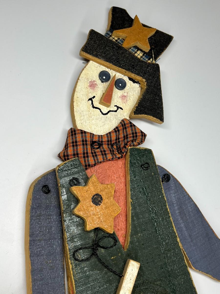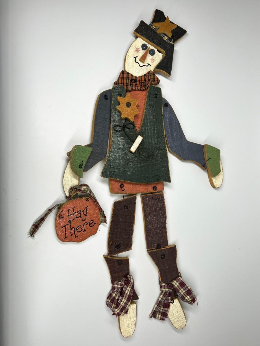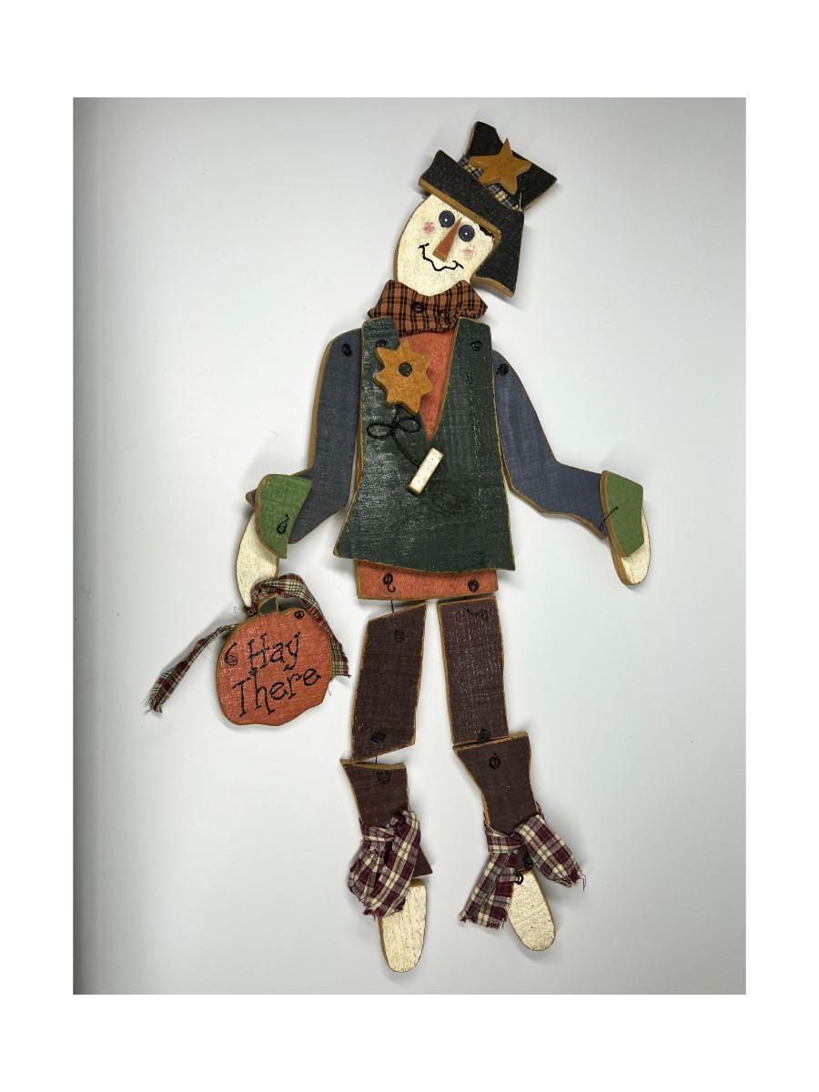 Holiday Hanging Home Wood Decor Bundled Up Scarecrow