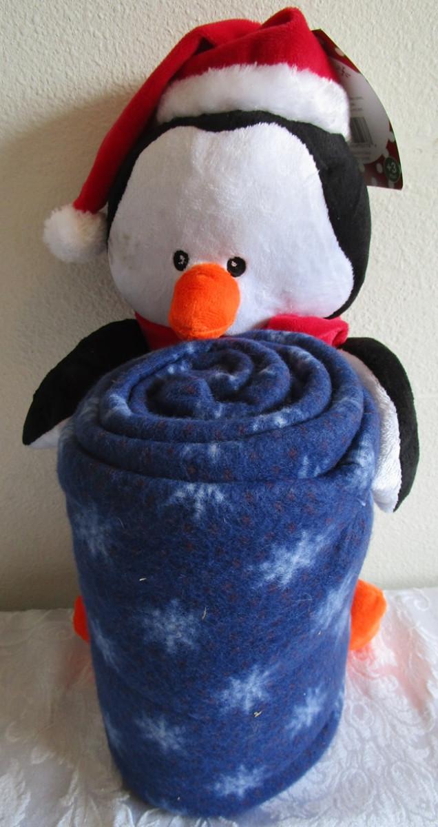 Penguin 13" tall with 50" x 60 " fleece throw, new with tag