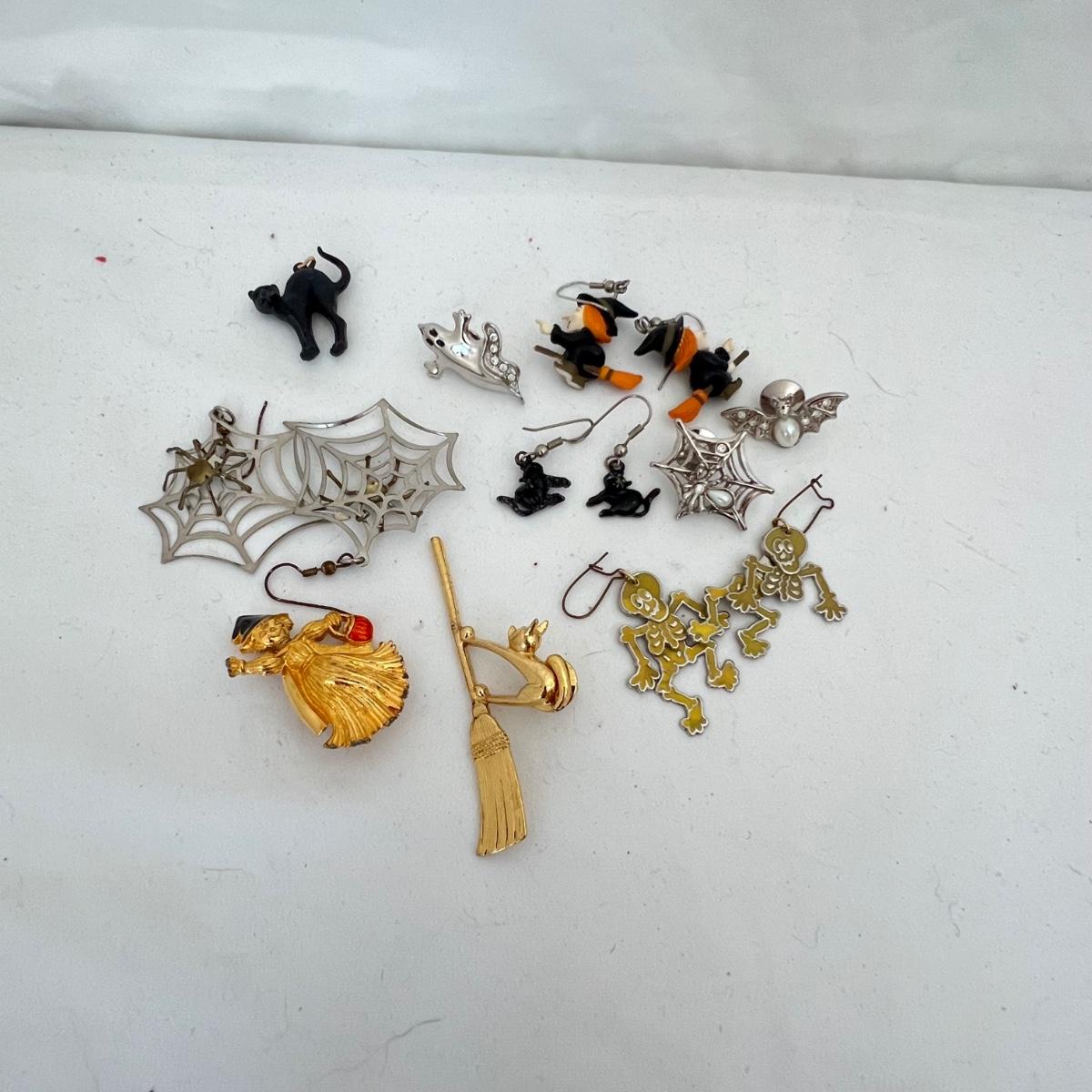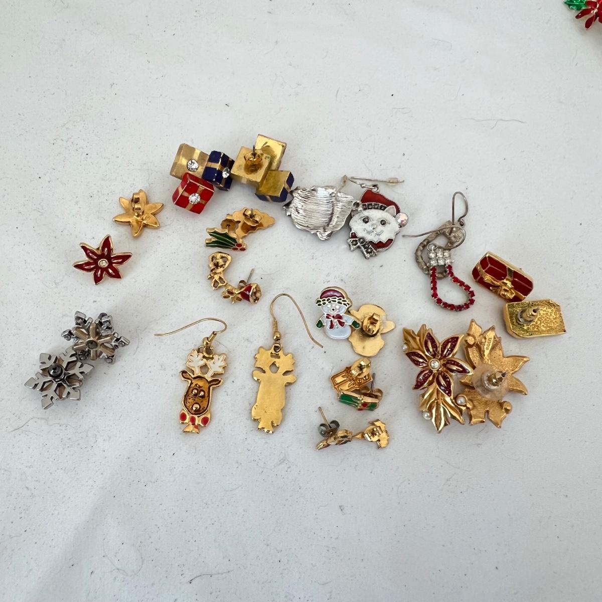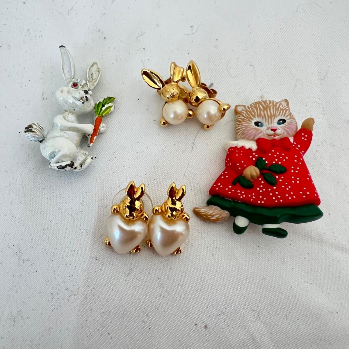 Over 75 items in this assortment of festive themed jewelry. Xmas, Halloween and more holidays featured. Earrings are for pierced ears. The white bunny (missing an eye) appears to be vintage and enameled with the word “˜Gerry’s’ on the back, no other significant markings found. All sales are final, no refunds so please bid accordingly.