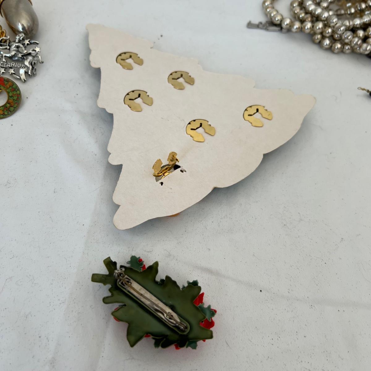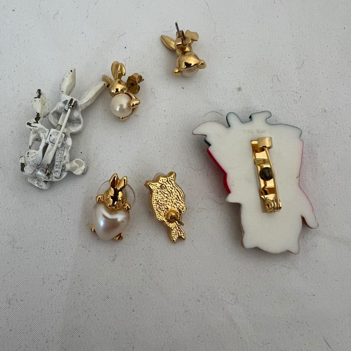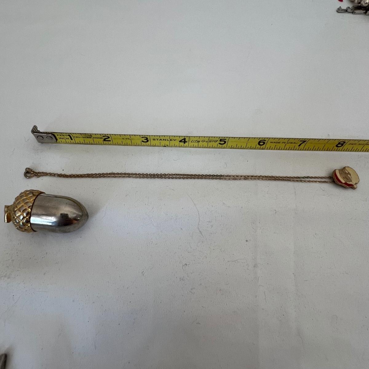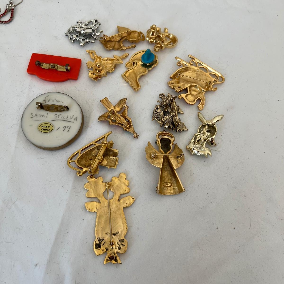 Over 75 items in this assortment of festive themed jewelry. Xmas, Halloween and more holidays featured. Earrings are for pierced ears. The white bunny (missing an eye) appears to be vintage and enameled with the word “˜Gerry’s’ on the back, no other significant markings found. All sales are final, no refunds so please bid accordingly.