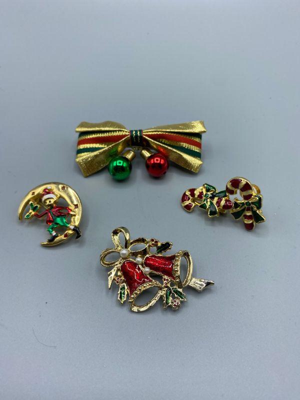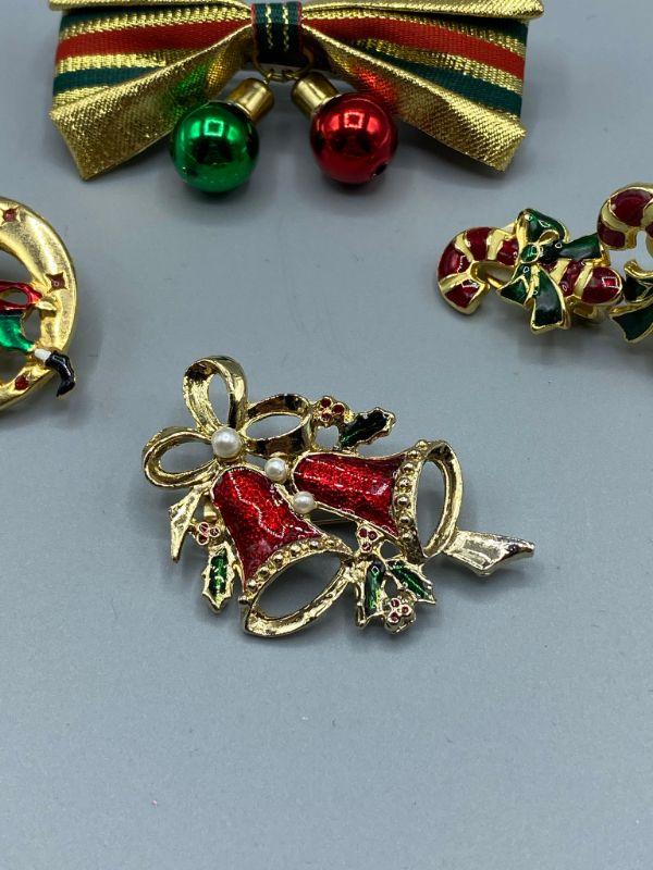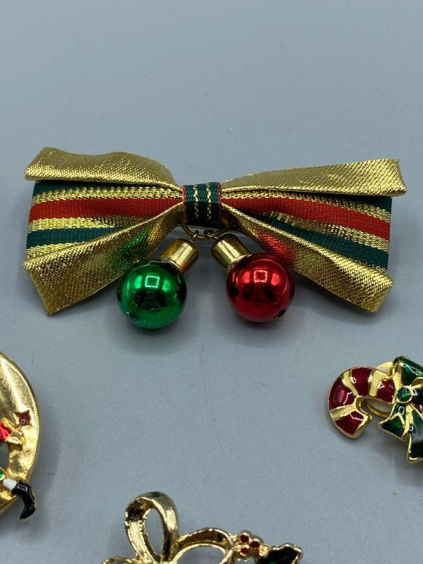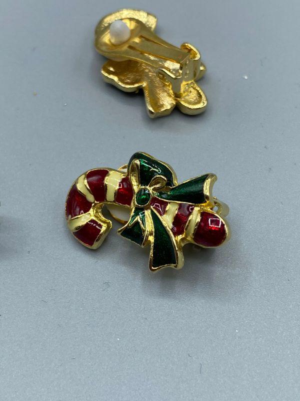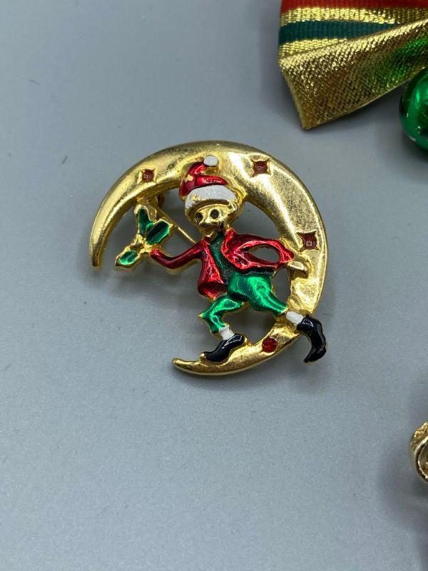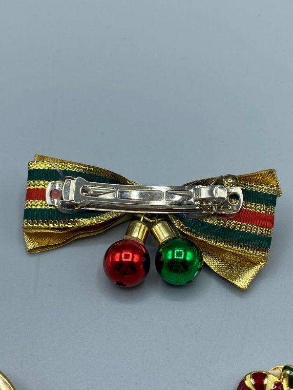 Christmas jewelry lot comes with two pins, clip earrings and a hair clip. Vintage styles, good condition.