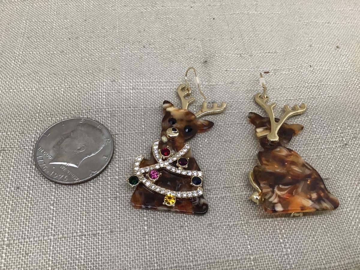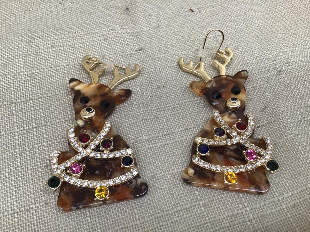 HOLIDAY LANE GOLD TONe Enamel CRYSTAL REINDEER DROP EARRINGS