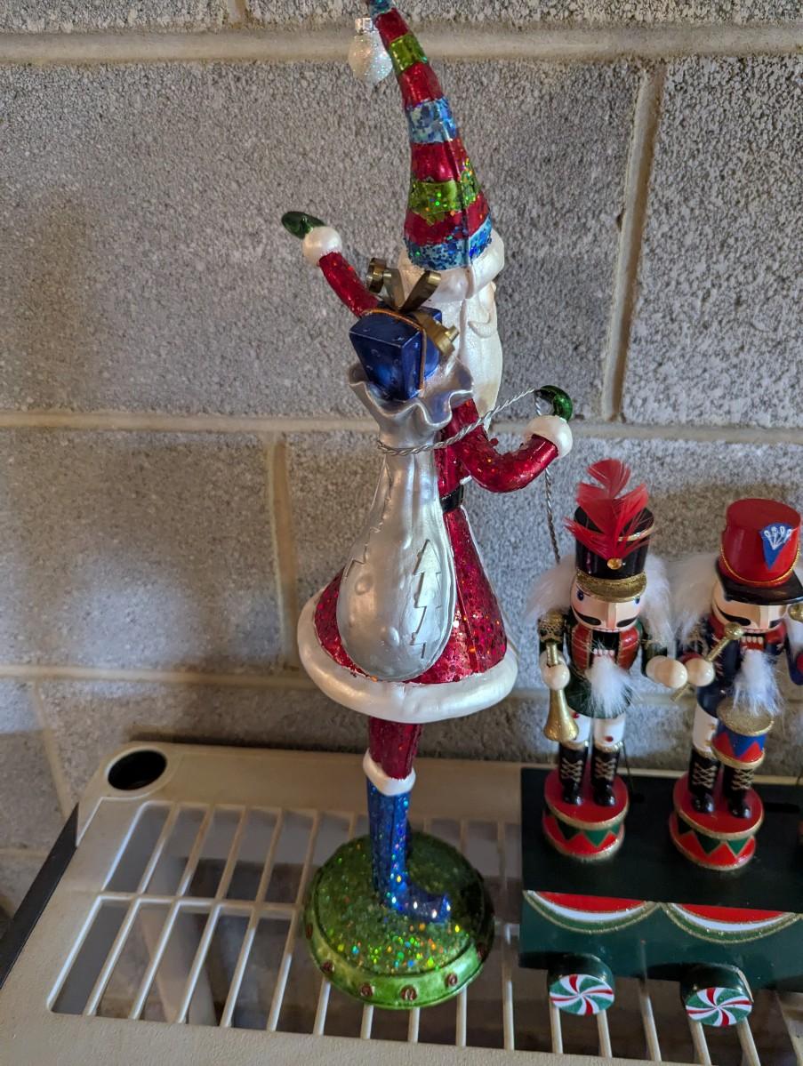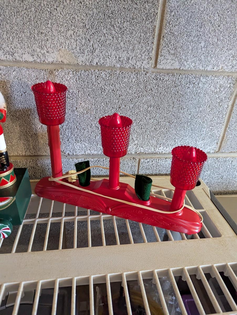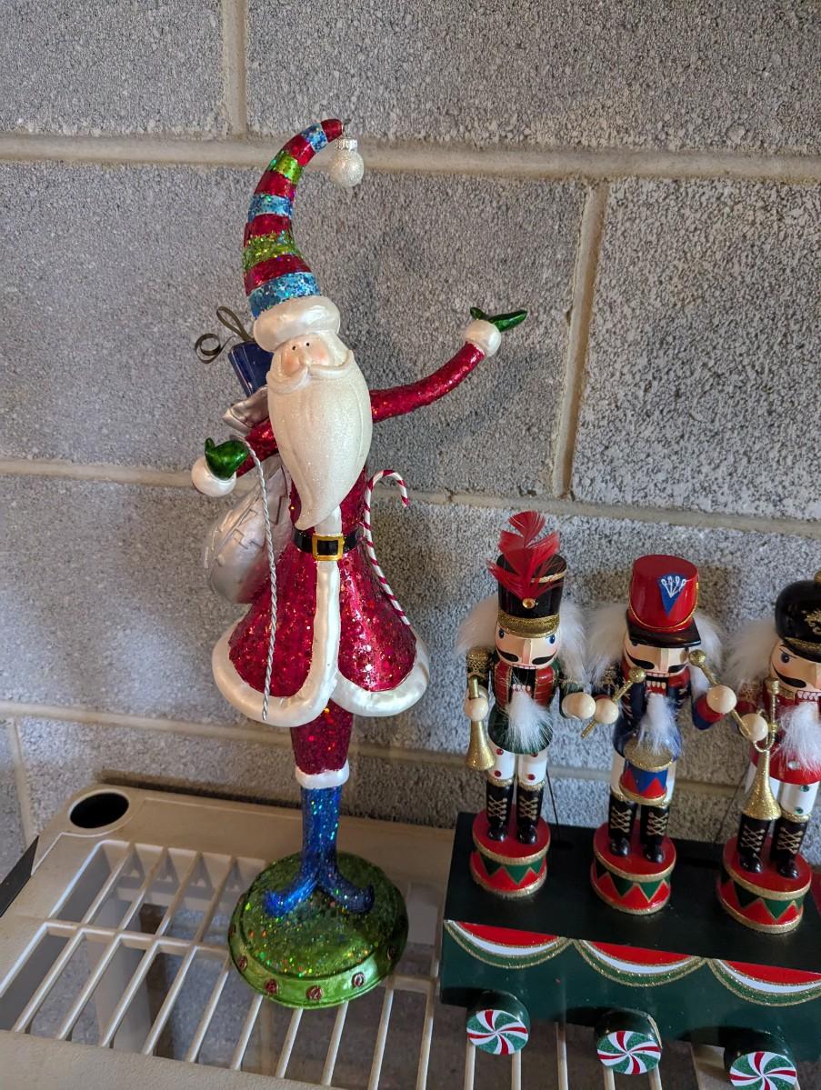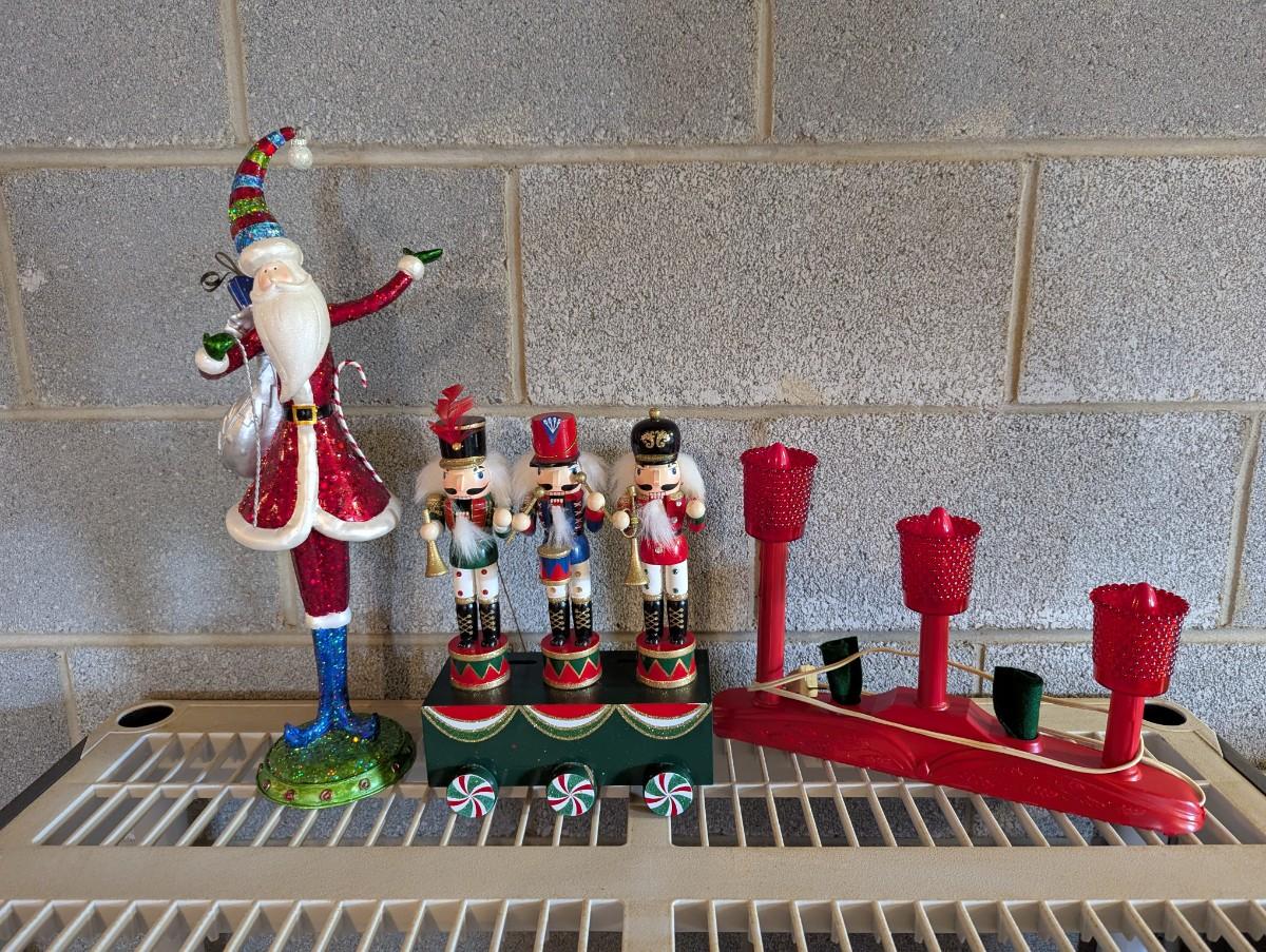 Santa Figure Red Plastic Candelabra & Holiday Lane King Musical Nutcracker Trio